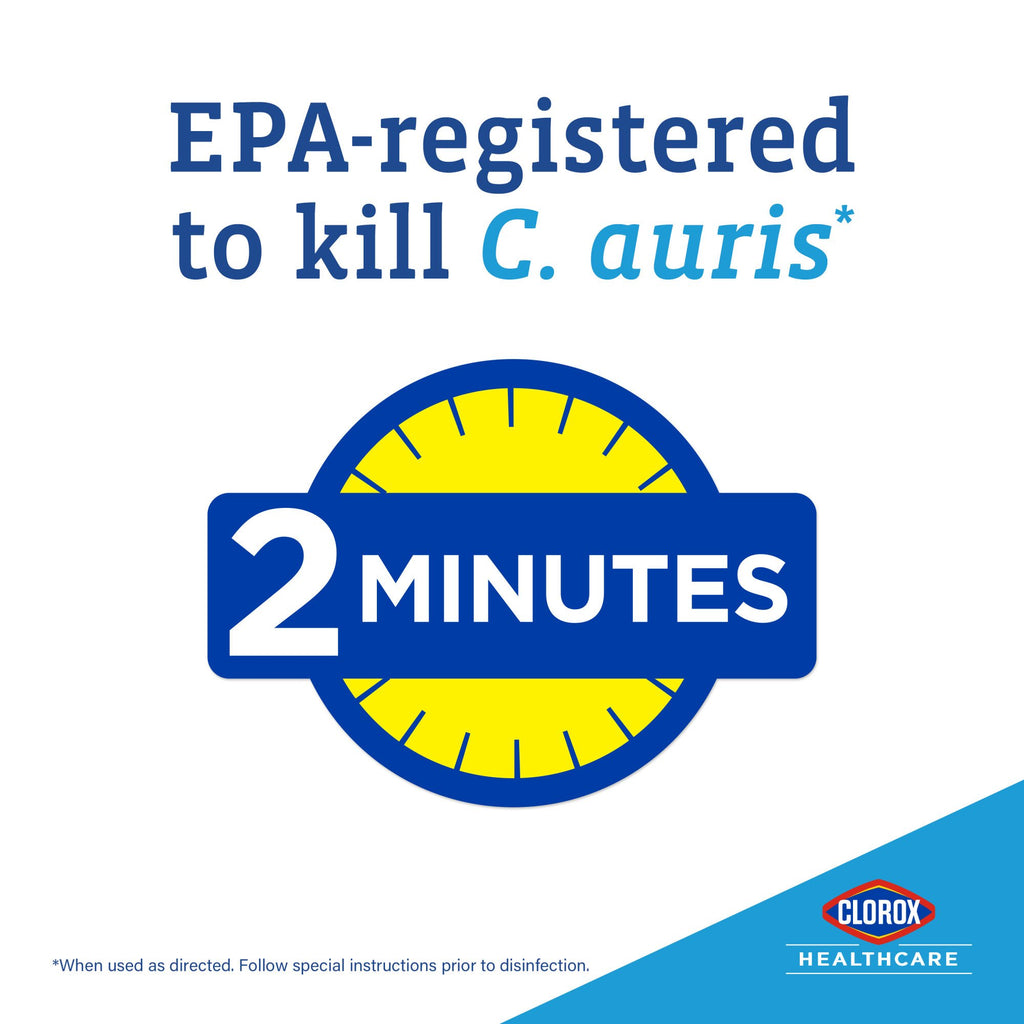 • Hydrogen Peroxide Wipes: Clorox Healthcare hydrogen peroxide wipes are EPA registered to kill C. auris in 2 minutes and 50 bacteria and viruses in 1 minute or less; package may vary