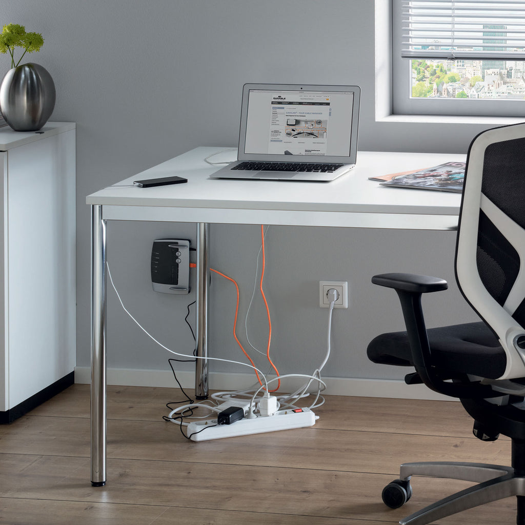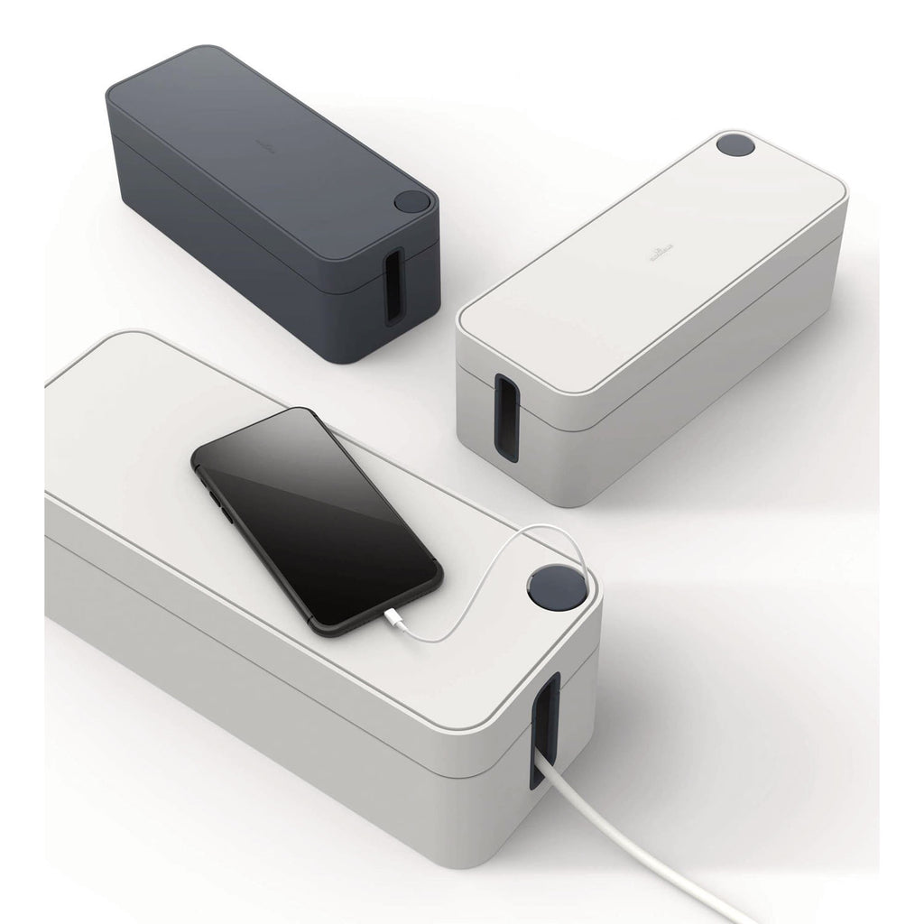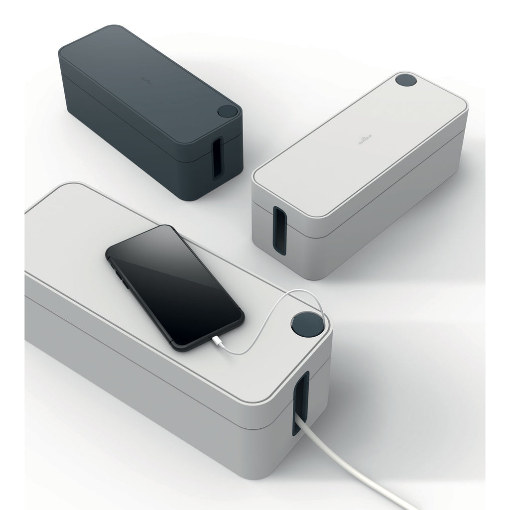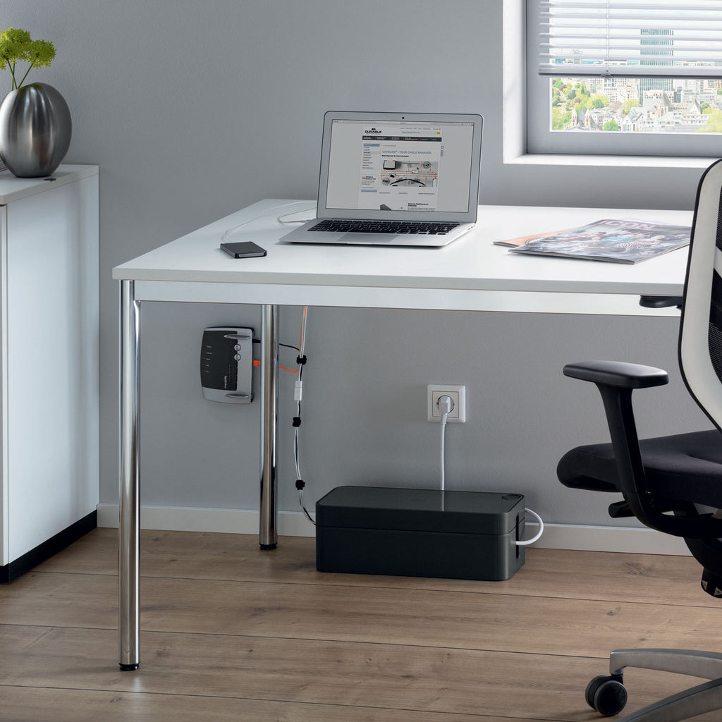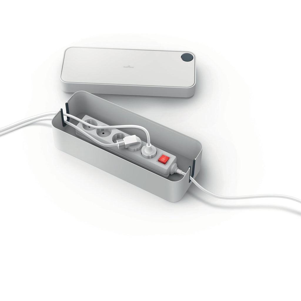 Cable management is made easy with DURABLE's CAVOLINE cable box. This high-quality cable organizer facilitates the orderly storage and placement of power strips, adapters and cables. The rubberized cable outlets, non-slip stability, and flame-retardant material make this cable box the ideal solution for cable organization. The cable routing at desks can be optimized quickly and flexibly for a user-friendly experience from start to finish. Best of all, the CAVOLINE cable box will reduce the risk of tripping hazards in the workplace and conceal and protect children and pets from the extension leads and cables.