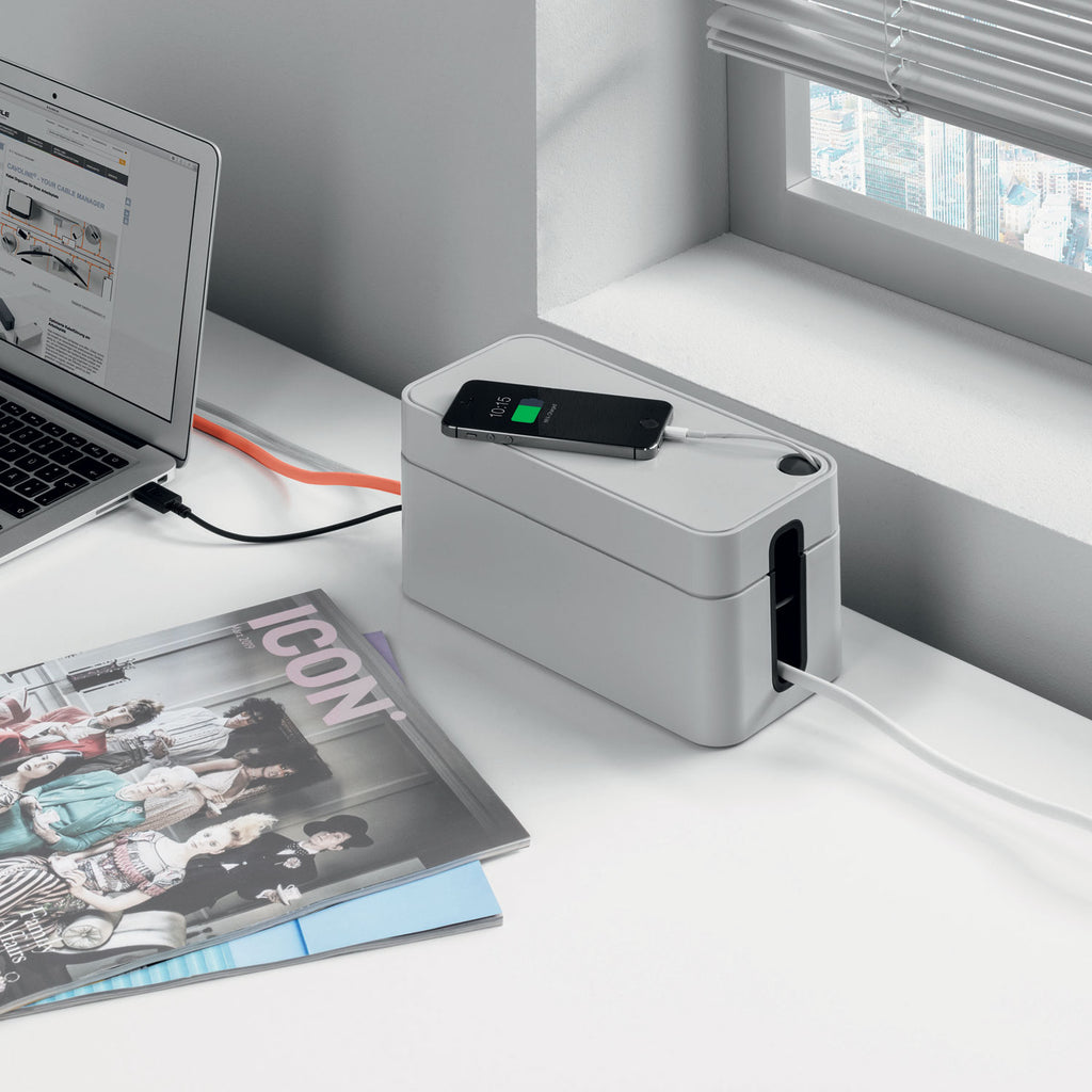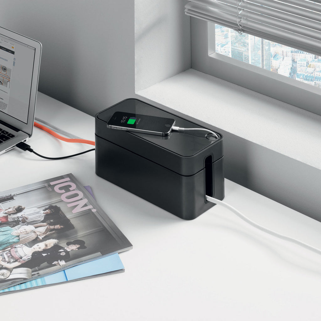 Cable management is made easy with DURABLE's CAVOLINE cable box. This high-quality cable organizer facilitates the orderly storage and placement of power strips, adapters and cables. The rubberized cable outlets, non-slip stability, and flame-retardant material make this cable box the ideal solution for cable organization. The cable routing at desks can be optimized quickly and flexibly for a user-friendly experience from start to finish. Best of all, the CAVOLINE cable box will reduce the risk of tripping hazards in the workplace and conceal and protect children and pets from the extension leads and cables.