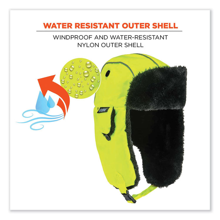 ergodyne® N-Ferno 6802 Classic Trapper Hat, Large/X-Large, Lime, Ships in 1-3 Business Days (EGO16855) Each