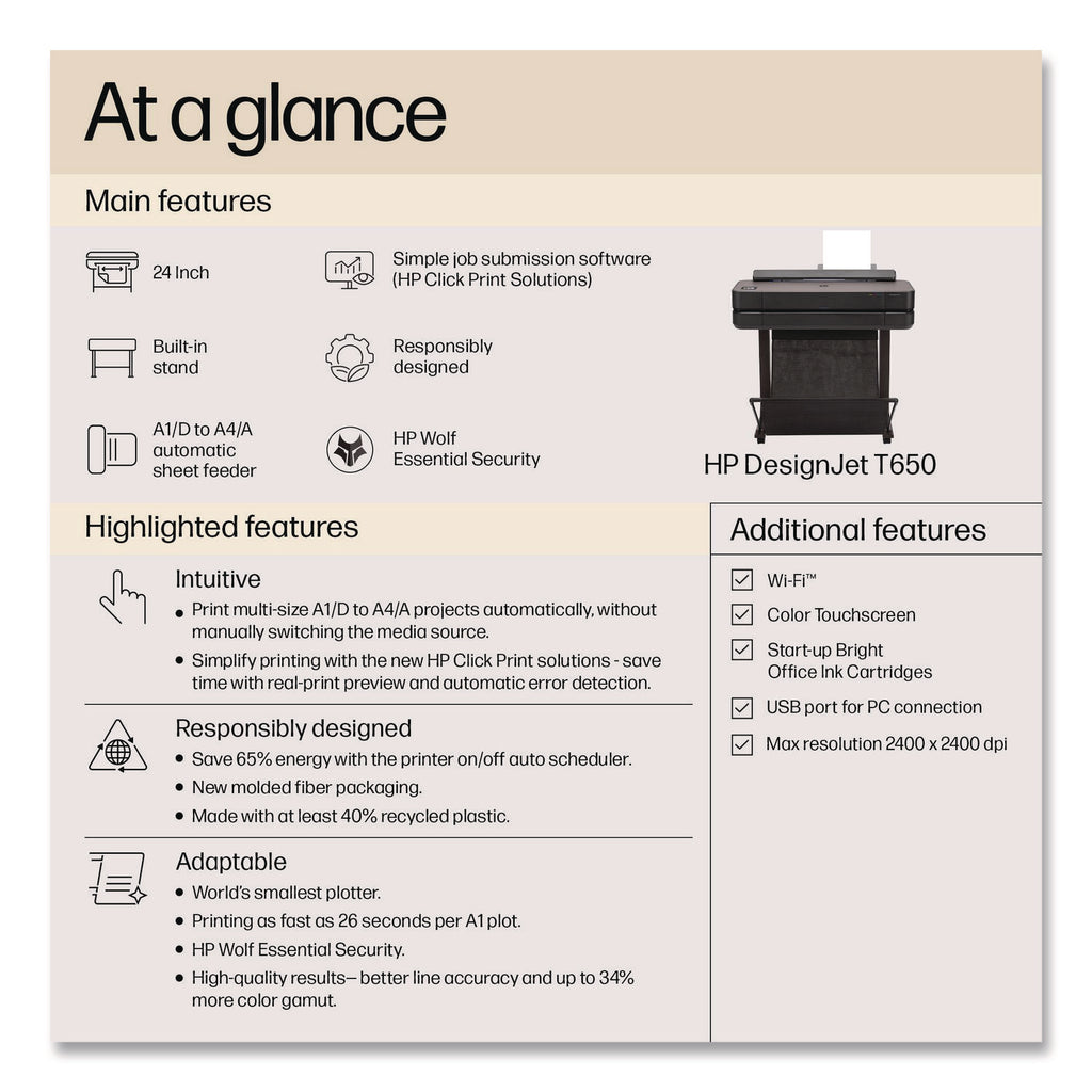 HP DesignJet T650 Series Large-Format Wireless Plotter Printer (HEW5HB10T) Each