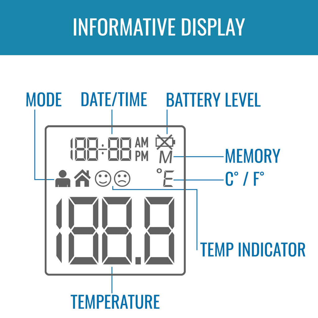 • Memory stores up to 10 readings for monitoring temperatures overtime