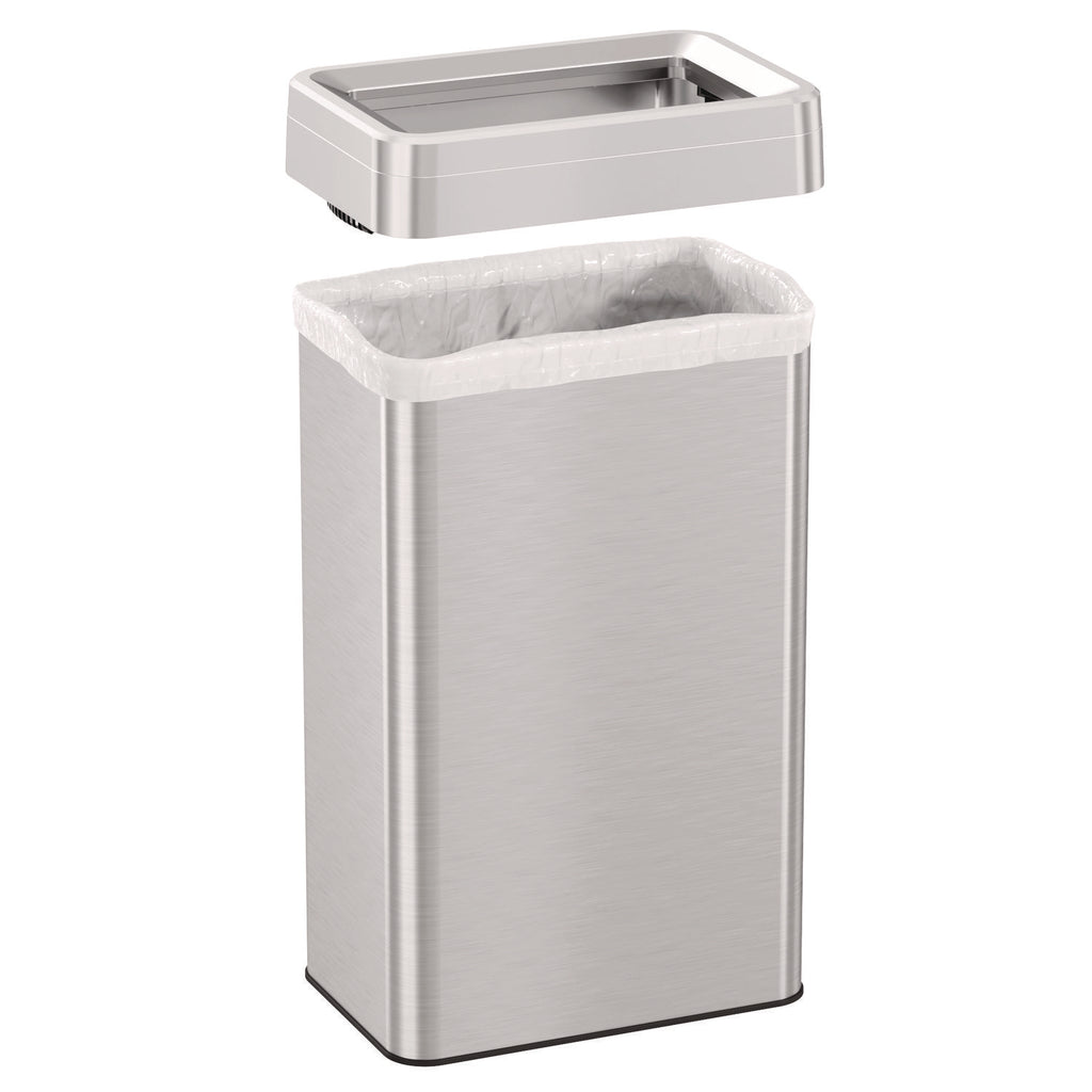 HLS Commercial® Open Top Trash Can, Rectangular, 18 gal, Plastic/Stainless Steel, Silver (HLMHLS18UOT) Each