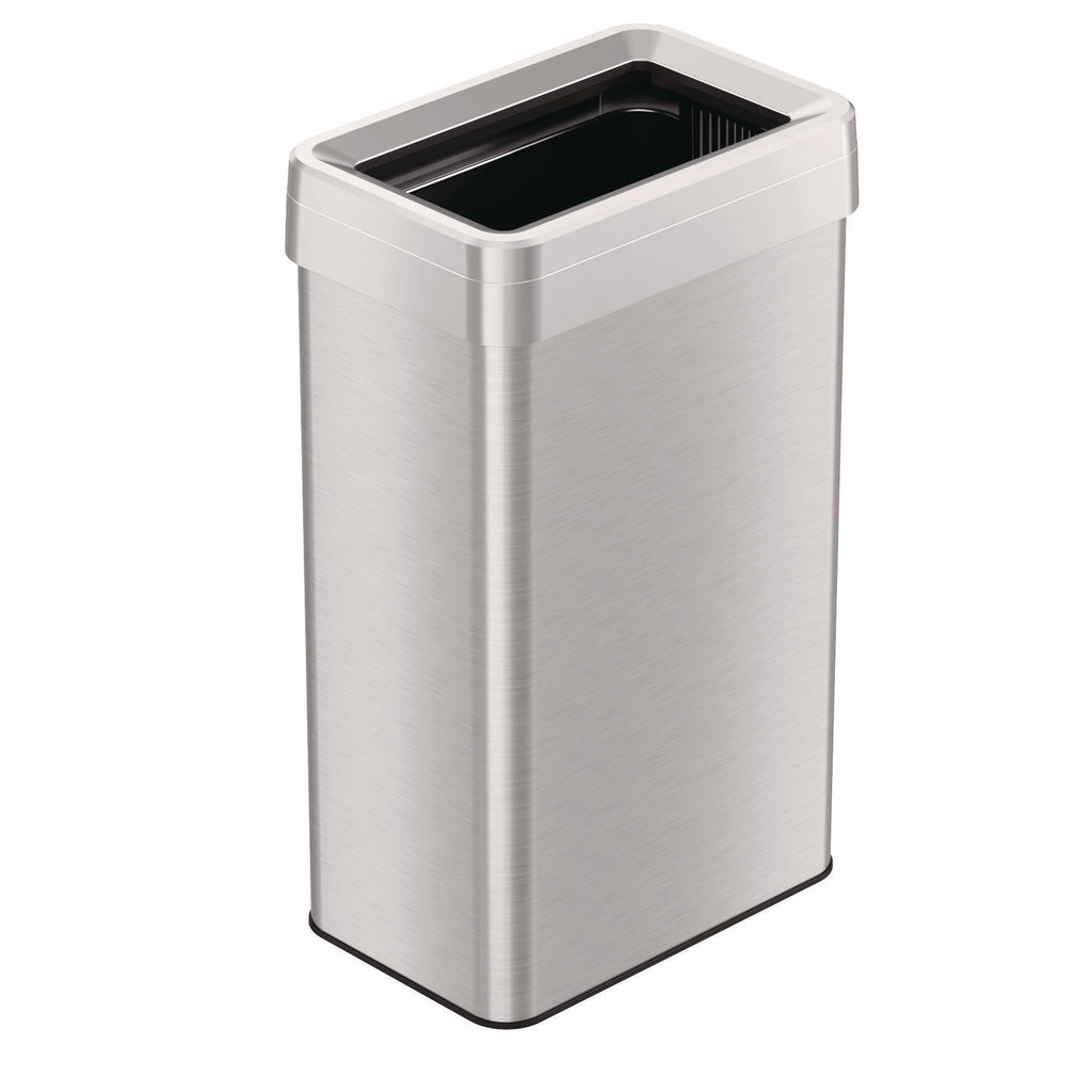 Upgrade your space with our sleek and efficient open top trash can! This bin is designed for quick and easy disposal with a convenient open top lid. Dual odor filters ensure that your surroundings stay fresh and clean, making it ideal for hospitality, medical, multi-family residential and commercial environments. The durable stainless steel body and ABS plastic lid offer a stylish and long-lasting solution, while the slim, space-saving design fits perfectly into any setting. Enhance your facility today with this practical and elegant trash can.