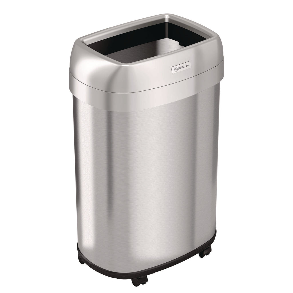HLS Commercial® Open Top Trash Can with Wheels, Oval, 13 gal, Plastic/Stainless Steel, Silver (HLMHLS13STVM) Each