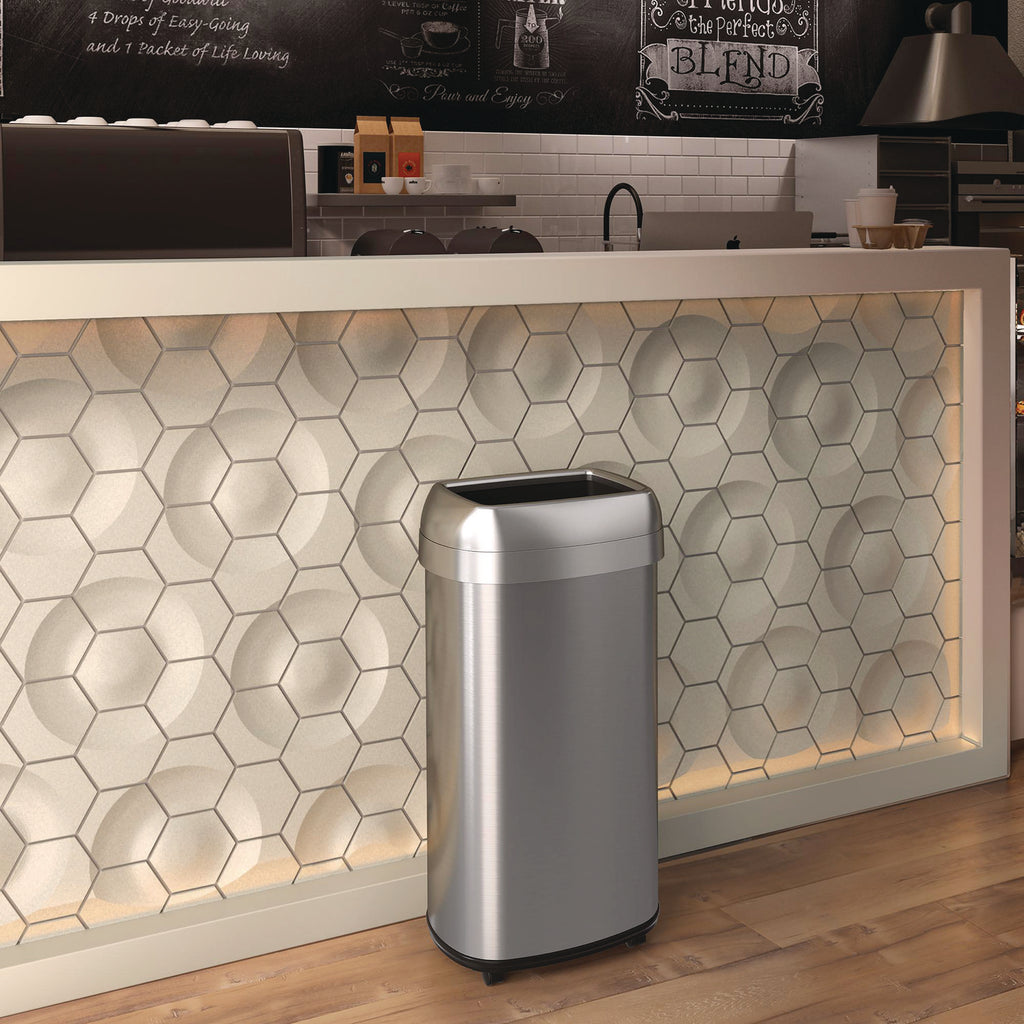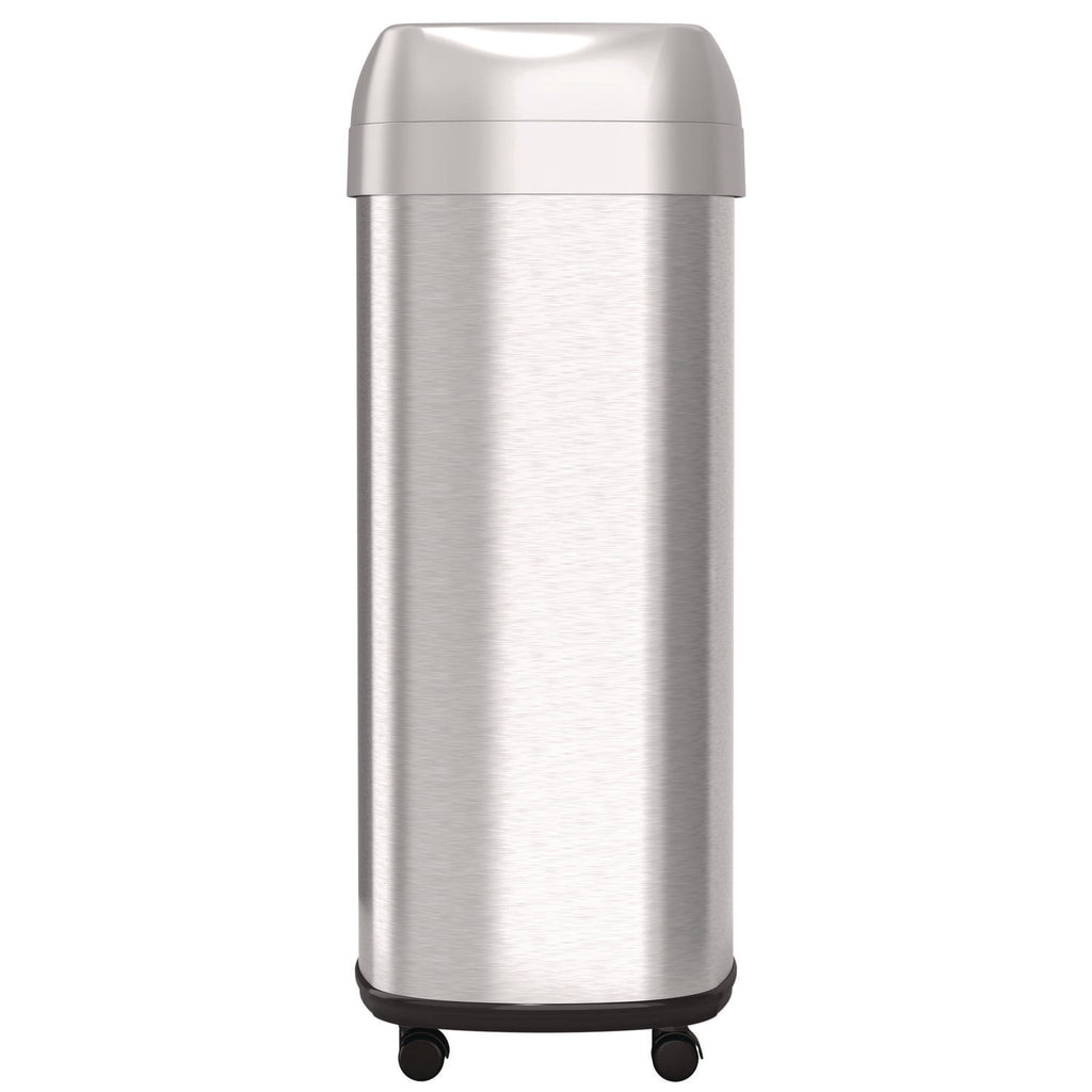 HLS Commercial® Open Top Trash Can with Wheels, Oval, 16 gal, Plastic/Stainless Steel, Silver (HLMHLS16STVM) Each
