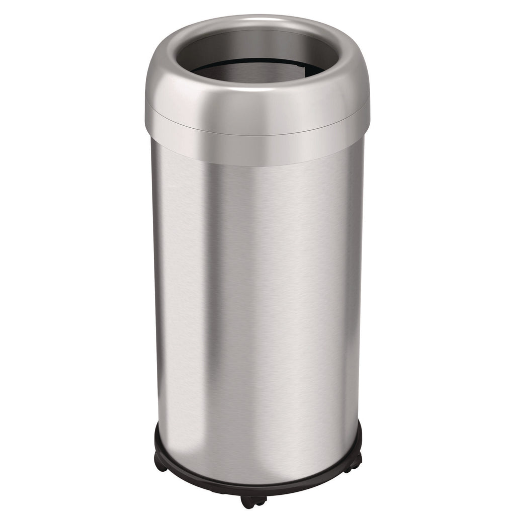 HLS Commercial® Open Top Trash Can with Wheels, Round, 16 gal, Plastic/Stainless Steel, Silver (HLMHLS16STRM) Each