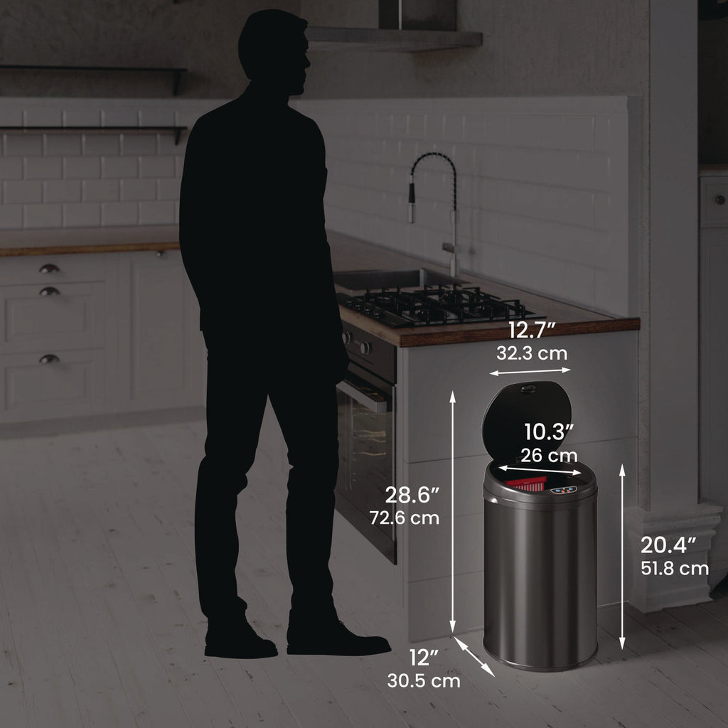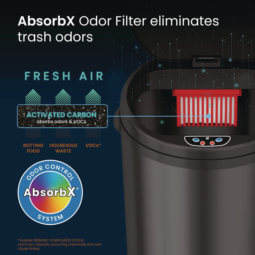 Elevate your waste management with our stainless steel sensor trash can. The 100% touch-free automatic lid ensures a hygienic and convenient disposal experience. A replaceable odor filter keeps the surrounding area fresh and clean, making it ideal for hospitality, medical, multi-family residential, and retail environments. Crafted with a durable and attractive stainless steel bin body and an ABS plastic lid, this trash can combines style with functionality. Its slim, space-saving design fits seamlessly into any setting. Powered by four AA size batteries (not included) or an optional AC adapter (sold separately), this trash can offers both convenience and efficiency for high-traffic areas.