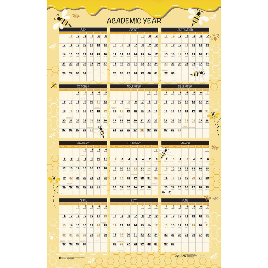 House of Doolittle™ 100% Recycled Academic Honeycomb Laminated Wall Calendar, 24 x 37, Tan/Yellow Sheets, 12-Month (July-June): 2024 to 2025 (HOD39855) Each