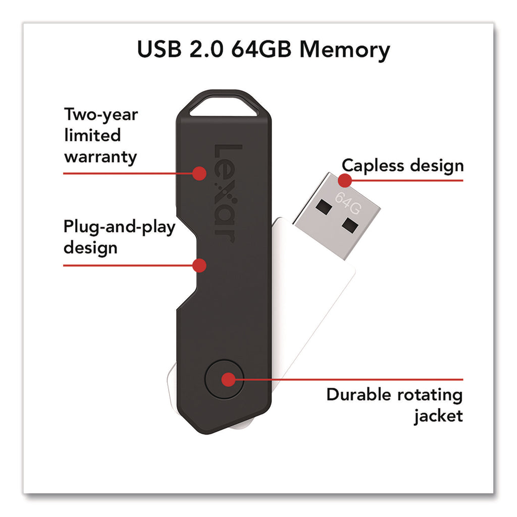 Lexar™ Twist Turn2 USB 2.0 Flash Drive, 64 GB, Black (LXR24388079) Each