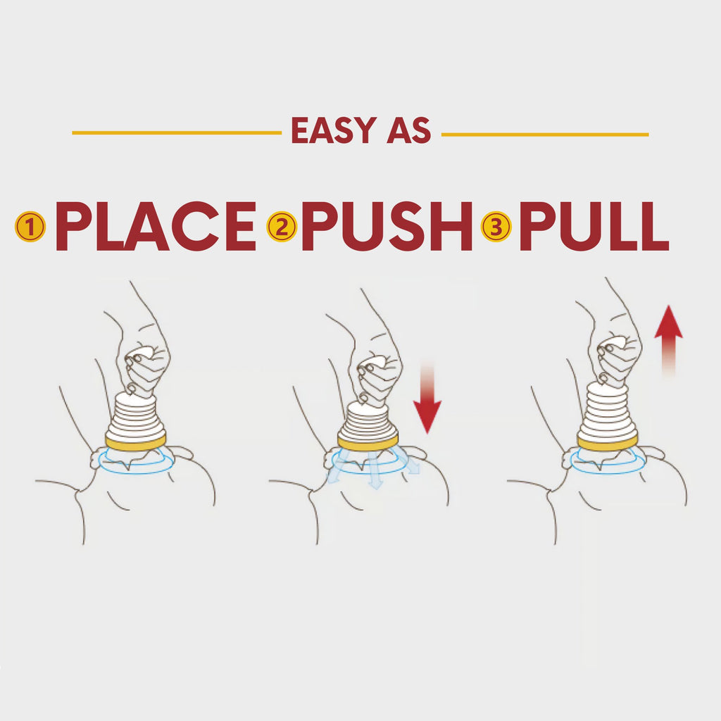 • Easy to use: Simple three-step operation – Place, Push, Pull – allows anyone to use it, even for self-rescue in choking emergencies