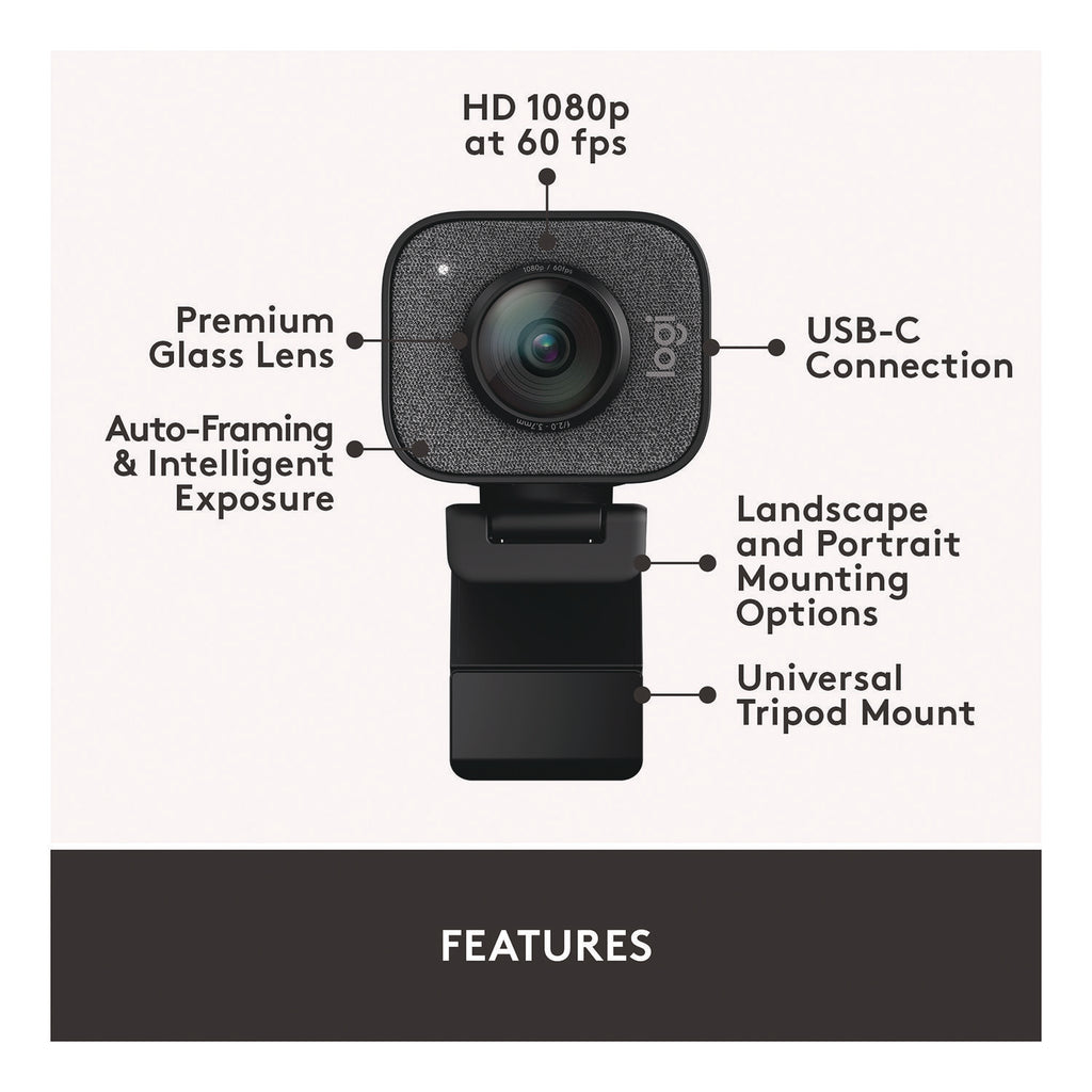 Logitech® StreamCam Plus Webcam, 1920 x 1080 Pixels, 2.1 Mpixels, Black (LOG24435282) Each