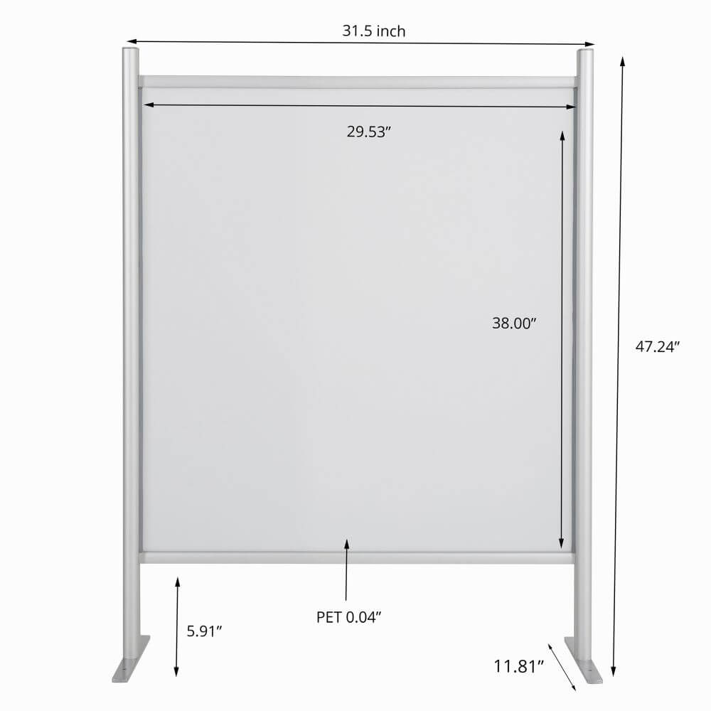 The Screen is made of PET material and has a great transparency. Very easy to install********* you can place these screens side by side to create a protective guard for desks in public use********* receptions********* pharmacies and spaces for workers. To raise awareness********* two social distancing stickers are included on each order.\n\nOur products are manufactured and imported from Europe. This Sneeze barrier is made of the finest materials while providing the highest level of quality. PET material is resistant to shatter. The aluminum bars makes the product durable yet light for easy carrying. Anodized finish will protect the bars from dust and light scratches.\n\nSuitable for indoor and outdoor use. This cough guard can be used in a multipurpose setting********* whether this may be at your place of business********* office********* markets********* etc. It can be used on checkout desks********* or as a retail shop transaction window********* or as an office counter window.