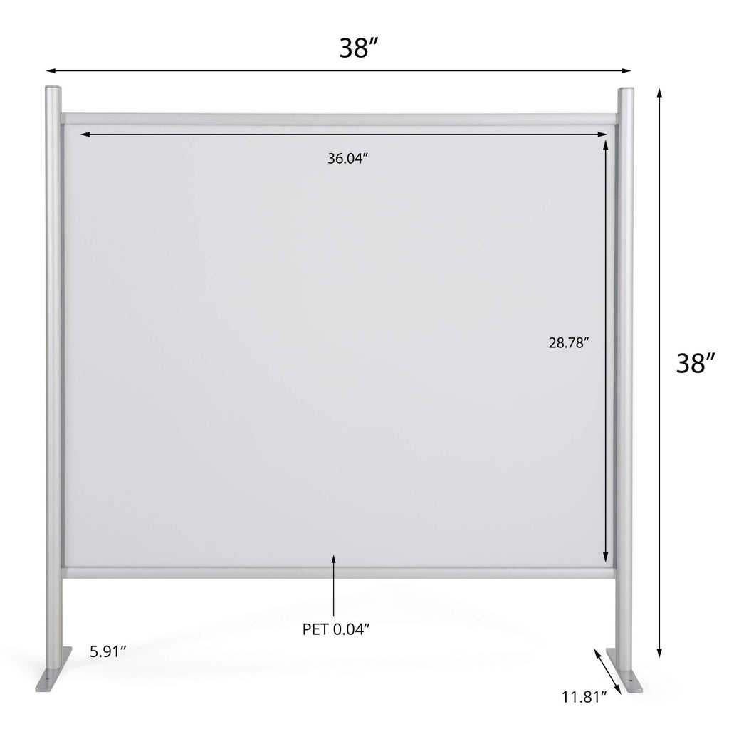 The Screen is made of PET material and has a great transparency. Very easy to install, you can place these screens side by side to create a protective guard for desks in public use, receptions, pharmacies and spaces for workers. To raise awareness, two social distancing stickers are included on each order.\n\nOur products are manufactured and imported from Europe. This Sneeze barrier is made of the finest materials while providing the highest level of quality. PET material is resistant to shatter. The aluminum bars makes the product durable yet light for easy carrying. Anodized finish will protect the bars from dust and light scratches.\n\nSuitable for indoor and outdoor use. This cough guard can be used in a multipurpose setting, whether this may be at your place of business, office, markets, etc. It can be used on checkout desks, or as a retail shop transaction window, or as an office counter window.