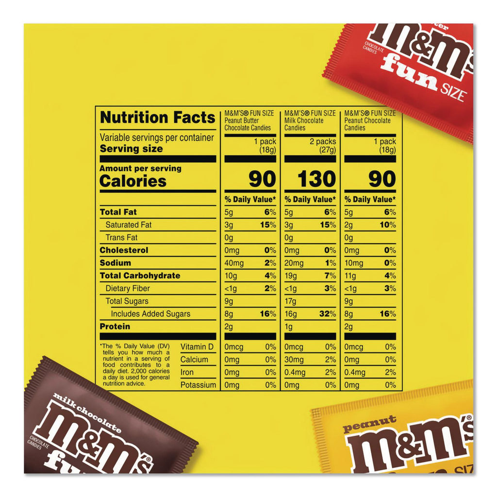 M & M's® Milk Chocolate, Peanut and Peanut Butter Fun Size Variety Pack, Assorted Flavors, Individually Wrapped, 90 Pieces (GRR22002630) Each