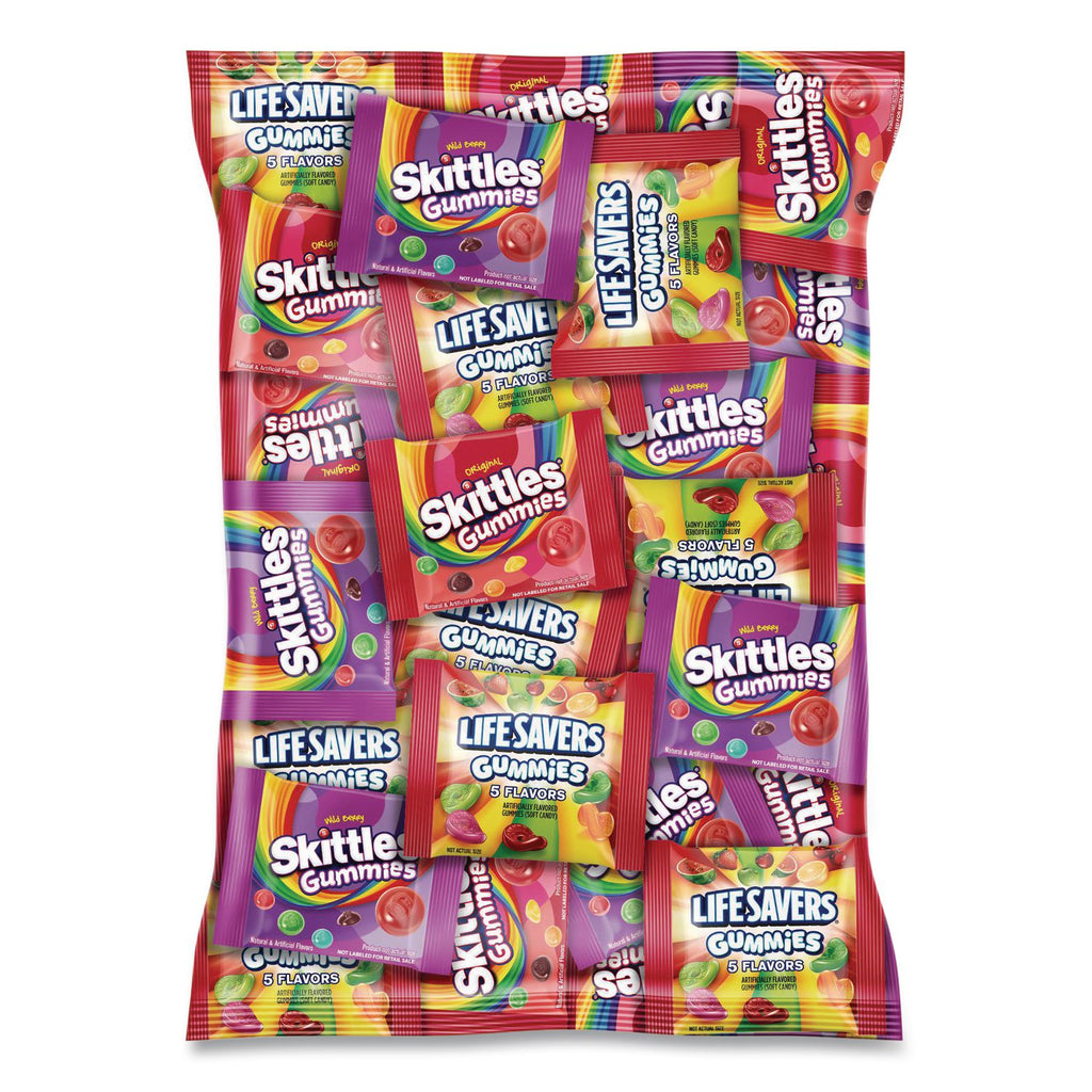 Who says time in the office can't be sweet? This bulk bag of gummy candy is just what you need. Stock the office pantry with this fun size assortment of Skittles Original Gummies, Lifesavers Original Gummies and Skittle Wild Berry Gummies. Boost office engagement by filling candy dishes around the office and break room to banish those mid-afternoon slumps. There's nothing like a water cooler conversation with a gummy treat in hand. From celebrating promotions to birthdays to holidays, create party favors and goodie bags featuring this gummy candy assortment. Shower your coworkers with sweets, not emails.