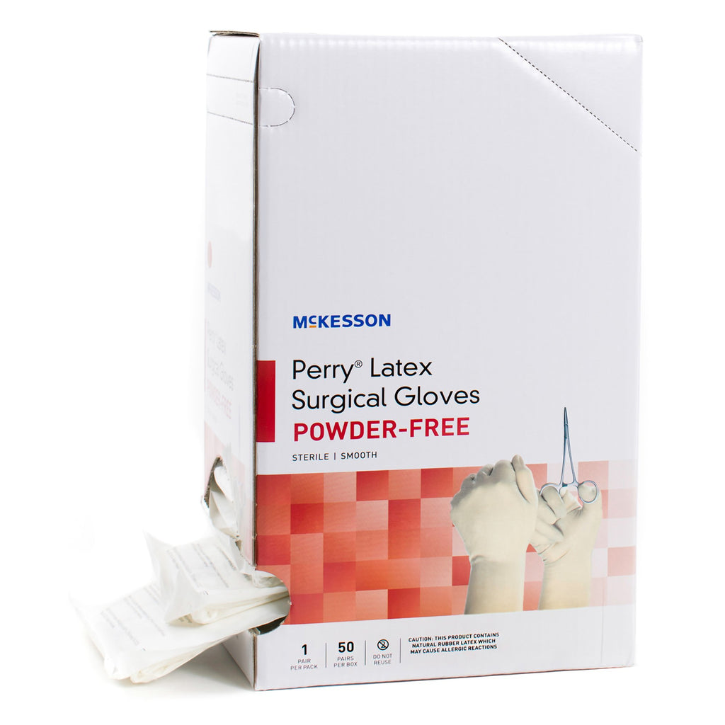 • These cream McKesson Perry Performance Plus latex surgical gloves help protect both patients and caregivers during critical medical procedures