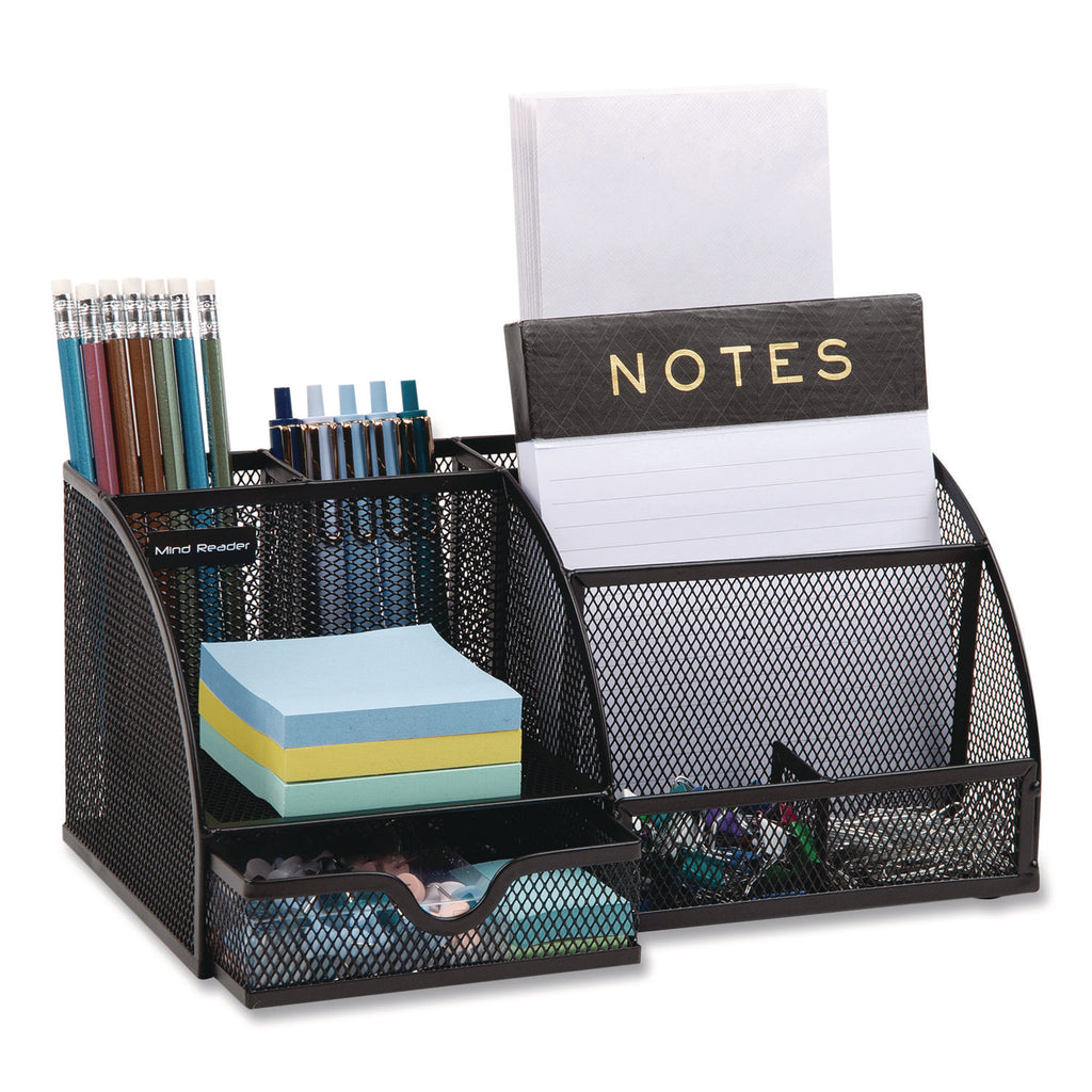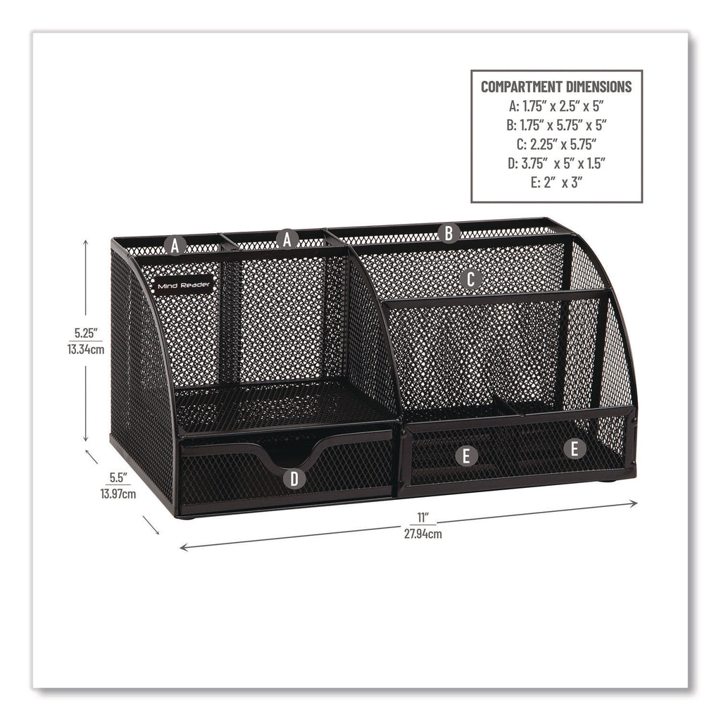 Mind Reader 7-Compartment Metal Desk Organizer, 11 x 5.5 x 5, Black Metal Mesh (EMSJOEORGBLK) Each