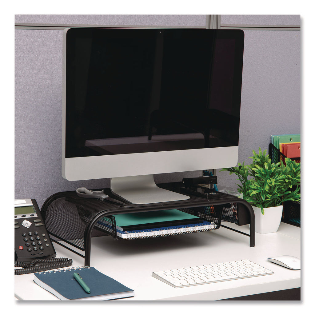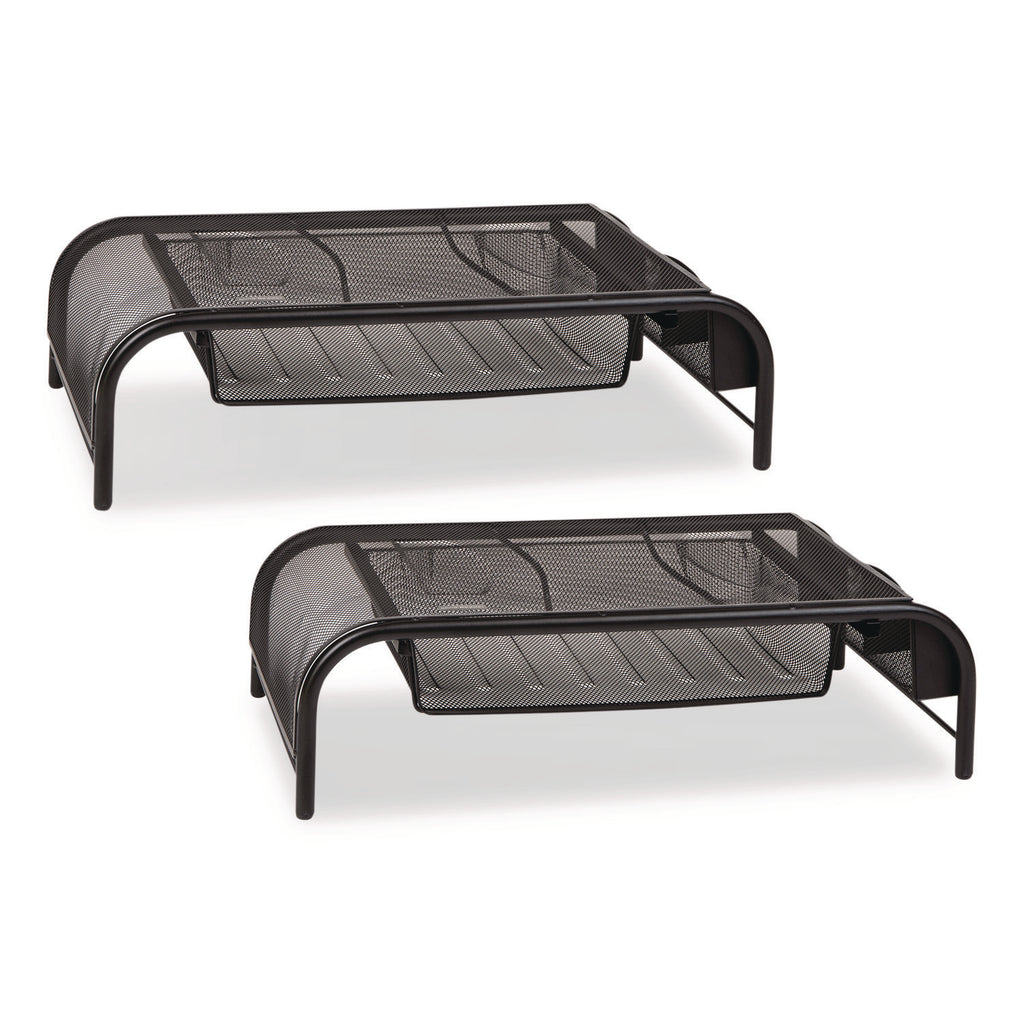 Mind Reader Metal Mesh Monitor Stand with Paper Tray, 20" x 11.5" x 5.5", Black, Supports 33 lb, 2/Pack (EMS2MESHMONBLK) Pack of 2