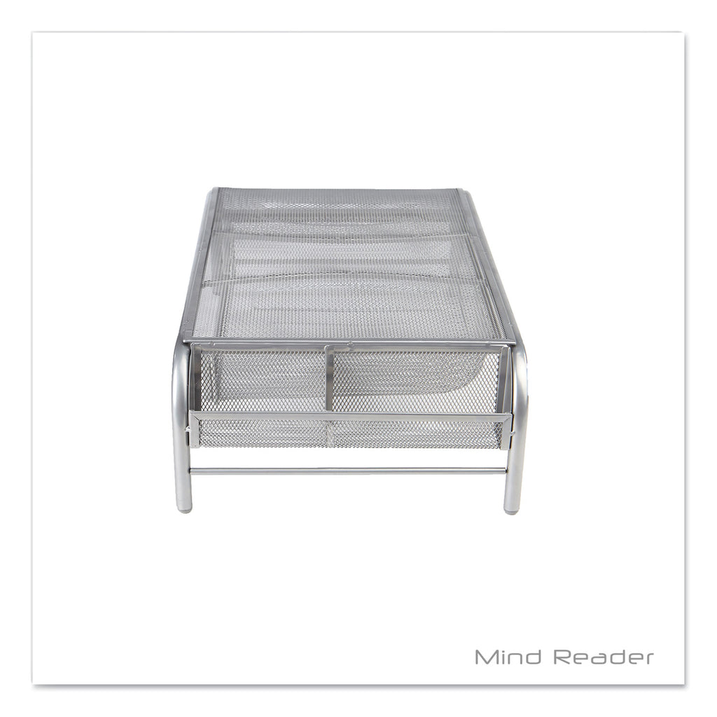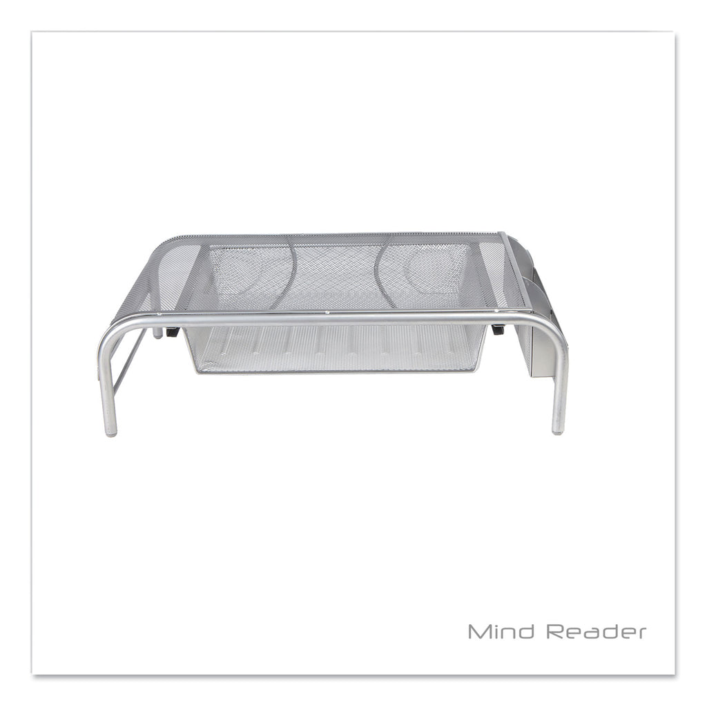 Mind Reader Raise Metal Mesh Monitor Stand with Drawer, 20" x 12" x 5.75", Silver, Supports 25 lbs (EMSMMSIL) Each
