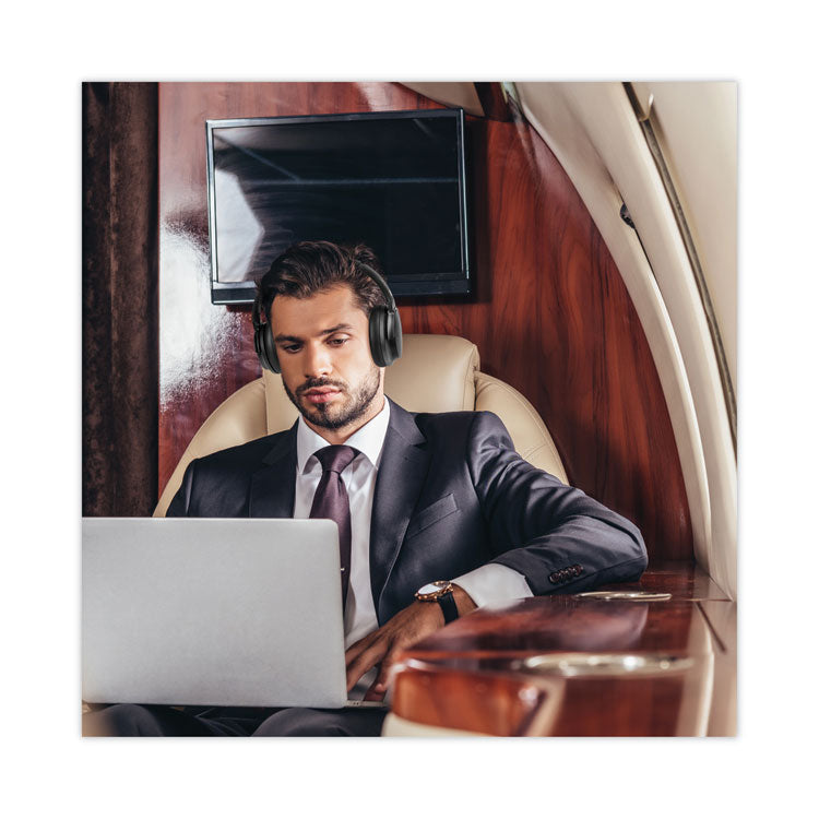 Designed with the Qualcomm® aptX™ HD Sound Codec for a truly immersive experience. Enjoy listening to the finer details of your music or movies in high-definition sound with powerful bass and experience the subtle nuances of better than CD quality. Active Noise Cancelling virtually eliminates background noise and allows you to focus on what's important. Turn the ANC off when you need to hear what is happening around you. These wireless headphones were built on the Bluetooth® 5.0 platform, allowing them to communicate as low-energy devices, providing a stronger signal for better stability and improved battery life up to 40 hours. Engineered with USB Type-C charging port and specially formulated battery that supports two times faster charging. In the rare case that your wireless headphones run out of power, a 15-minute quick charge will provide up to five hours of use. The ear cushions were designed with a protein leather, sourced from Korea, to simulate the natural feel of leather on your skin. Plush memory foam inner cores were added, to surround your ears in comfort while providing noise isolation from ambient room noise. These wireless headphones work in both wireless and wired Mode with the included USB Type-C to 3.5 mm cable. In the rare event that you run out of power, they can be plugged in and will work in wired mode. An included Airplane adapter allows you to relax and listen in true stereo. These Synergy HD Wireless Over Ear Headphones were designed to work with Zoom, Microsoft Teams, Google Meet, WhatsApp, WebEx, WeChat, Skype and a myriad of conference call applications, so you can connect with your customers or associates and communicate clearly.