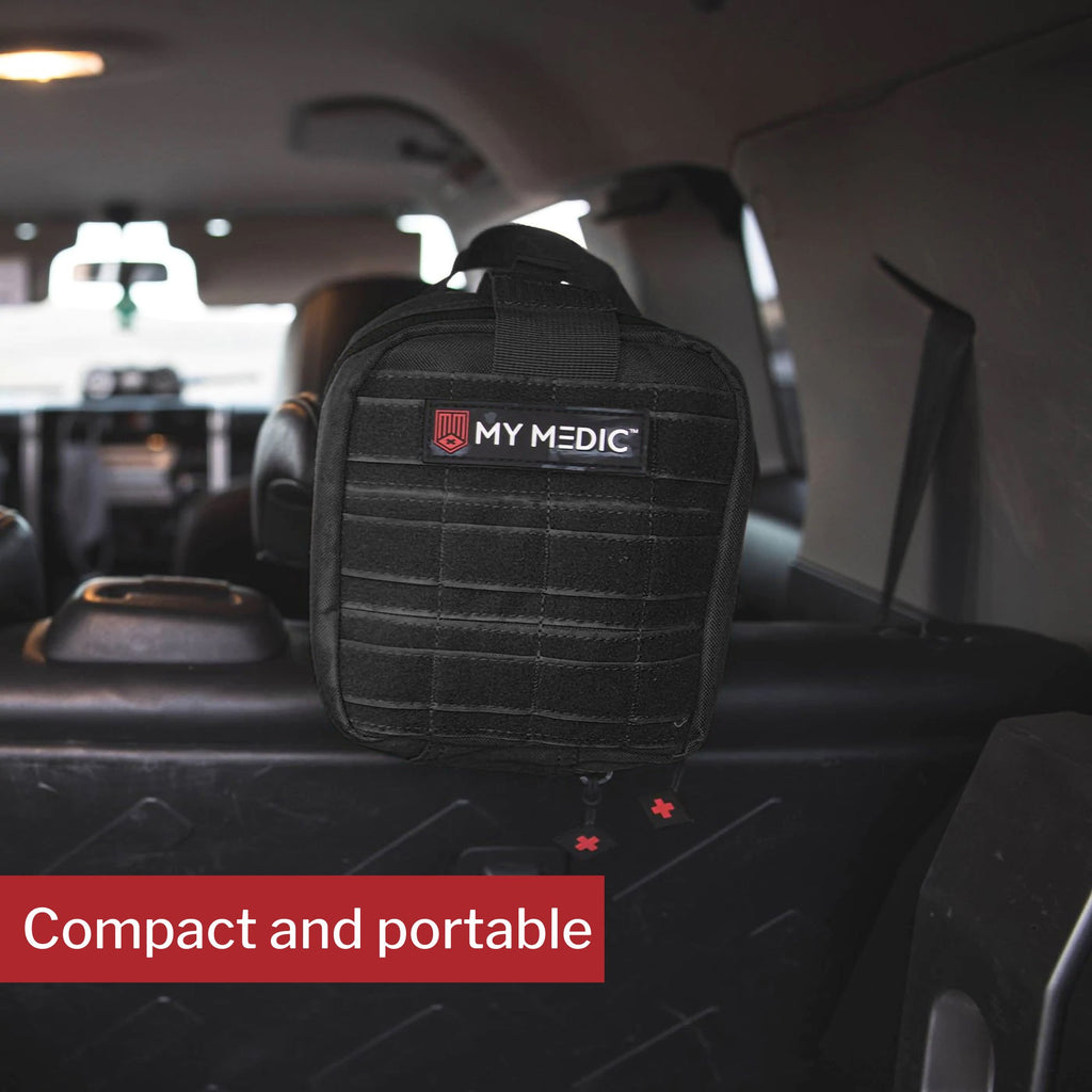 • MyMedic Pro First Aid Kit contains everything in the standard kit, plus 14 additional life-saving items: The kit contains 100+ medical supplies and trauma equipment in a portable bag that can be used for hikes, backpacking adventures, and everyday emergencies.