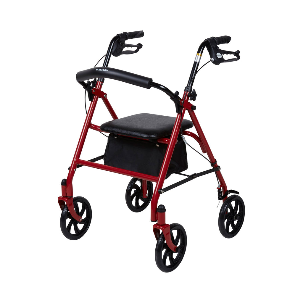 McKesson 4 Wheel Rollator Red Adjustable Height / Folding Steel Frame (1065268_EA) 1/EA