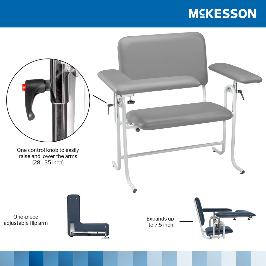 McKesson Blood Drawing Chair 1 Fixed Armrest, 1 Flip Up Armrest Gray (485313_EA) 1/EA