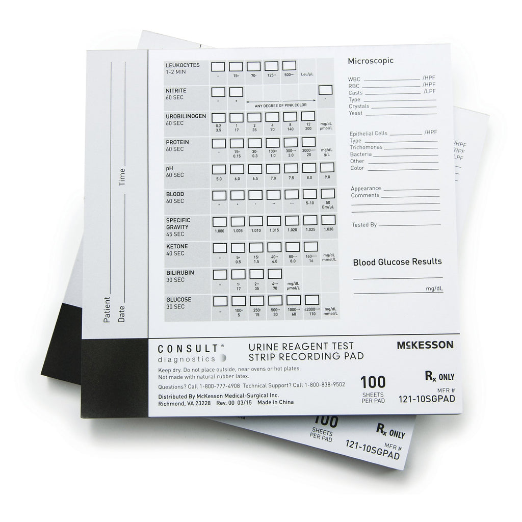 McKesson Consult™ Urine Reagent Test Strip Recording Pad For use with McKesson CONSULT® 10SG Urine Reagent Strips (MFR # 121-10SG) (976928_PD) 100/PD