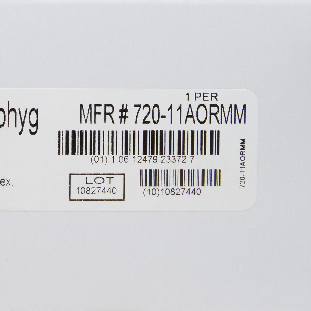 • This two-tube aneroid sphygmomanometer with cuff features a size guide to aid in properly cuffing patients