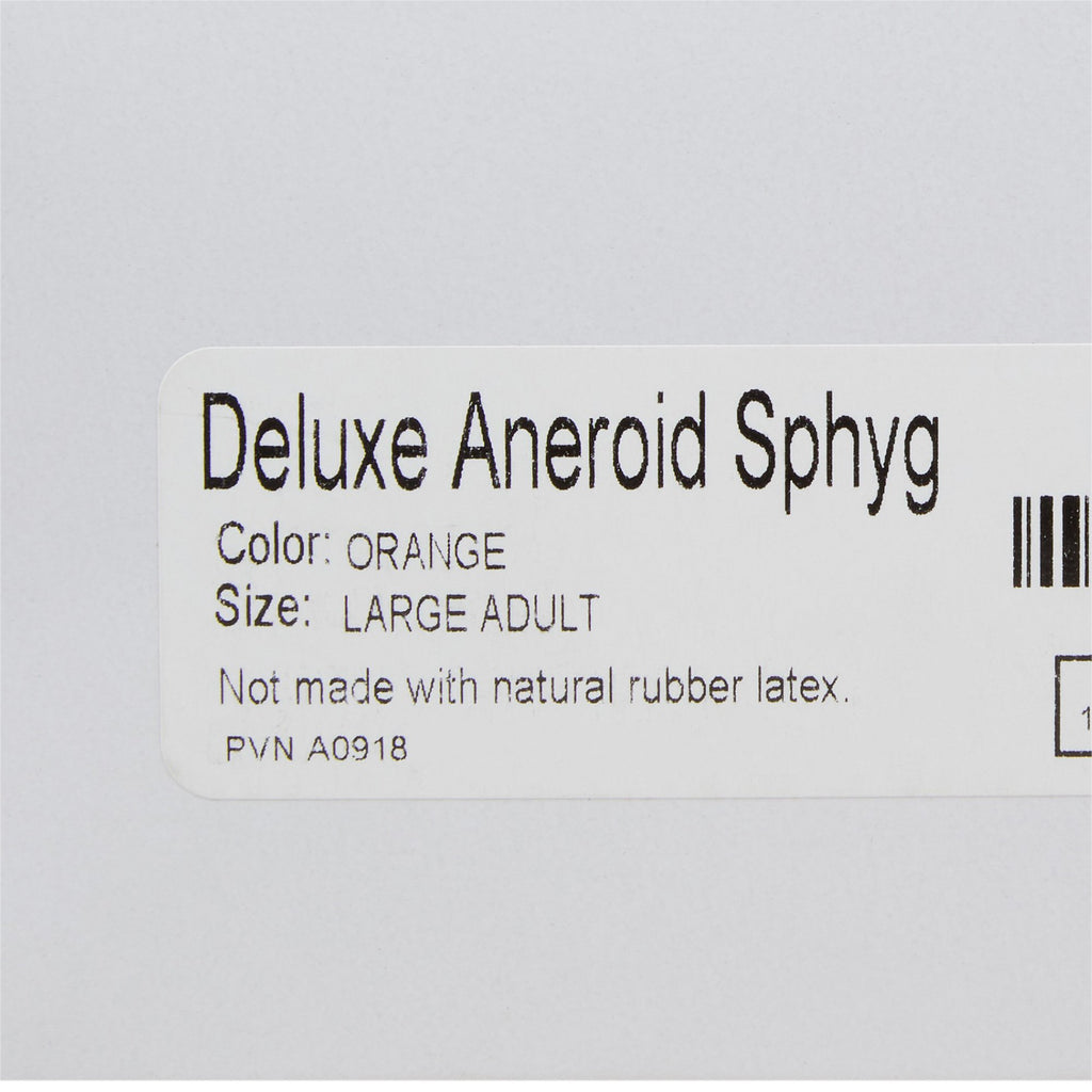 • This orange aneroid sphygmomanometer with cuff features the Adcuff large cuff to accommodate adults