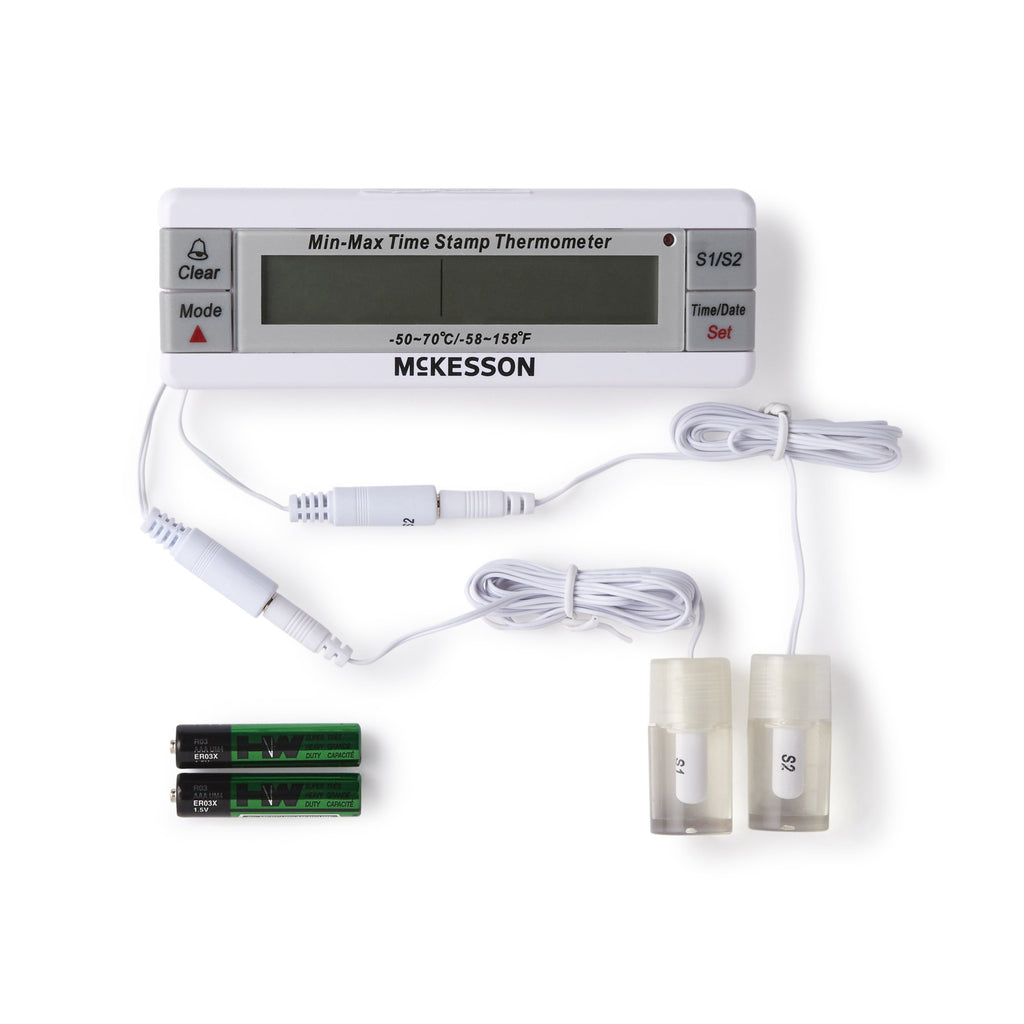 McKesson Digital Refrigerator / Freezer Thermometer with Alarm Fahrenheit / Celsius -58° to +158°F (-50° to +70°C) Desk / Wall / Door Mount Battery Operated (1074439_EA) 1/EA