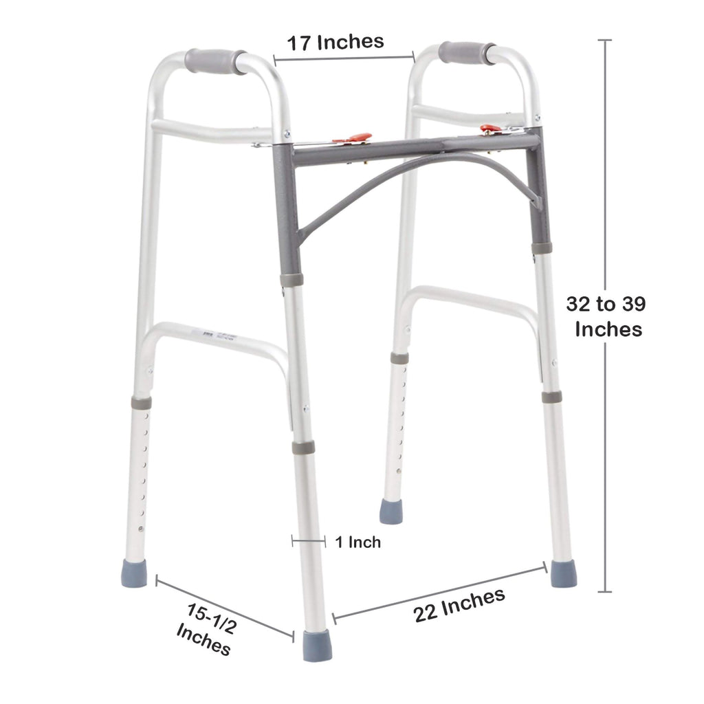 McKesson Dual Release Folding Walker Adjustable Height Aluminum Frame 350 lbs. Weight Capacity 32 to 39 Inch Height (1088076_CS) 1/CS