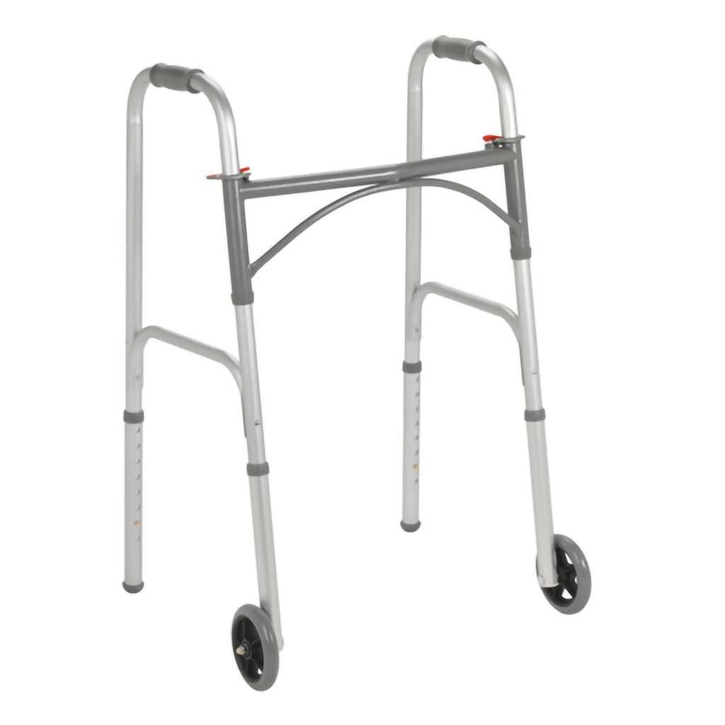 McKesson Dual Release Folding Walker with Wheels Adjustable Height Steel Frame 350 lbs. Weight Capacity 32 to 39 Inch Height (1128891_CS) 4/CS