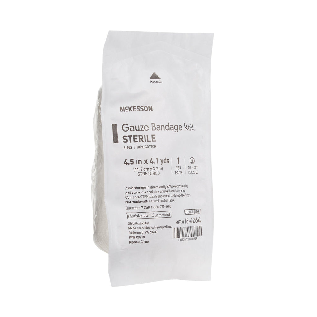 McKesson Fluff Bandage Roll 4-1/2 Inch X 4-1/10 Yard 6-Ply Sterile 1 per Pack (446051_CS) 100/CS