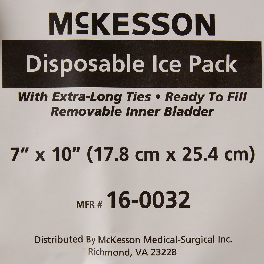 • McKesson disposable ice pack with extra-long ties is ready to fill with ice.