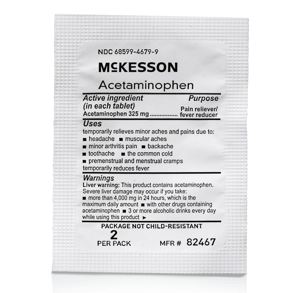 McKesson Pain Relief 325 mg Strength Acetaminophen Unit Dose Tablet 250 per Box (1111736_CS) 3000/CS