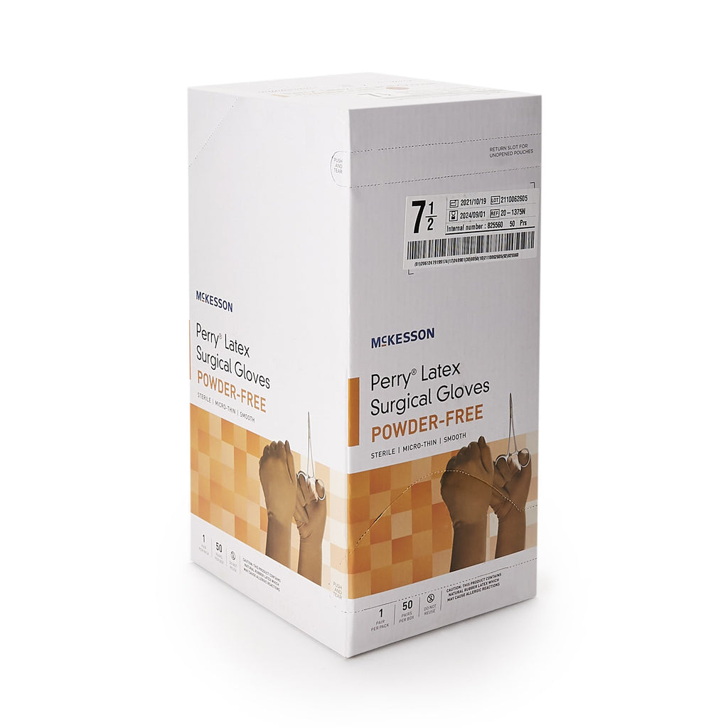 McKesson Perry® Surgical Glove Size 7.5 Sterile Latex Standard Cuff Length Smooth Brown Not Chemo Approved (1044731_BX) 50/BX