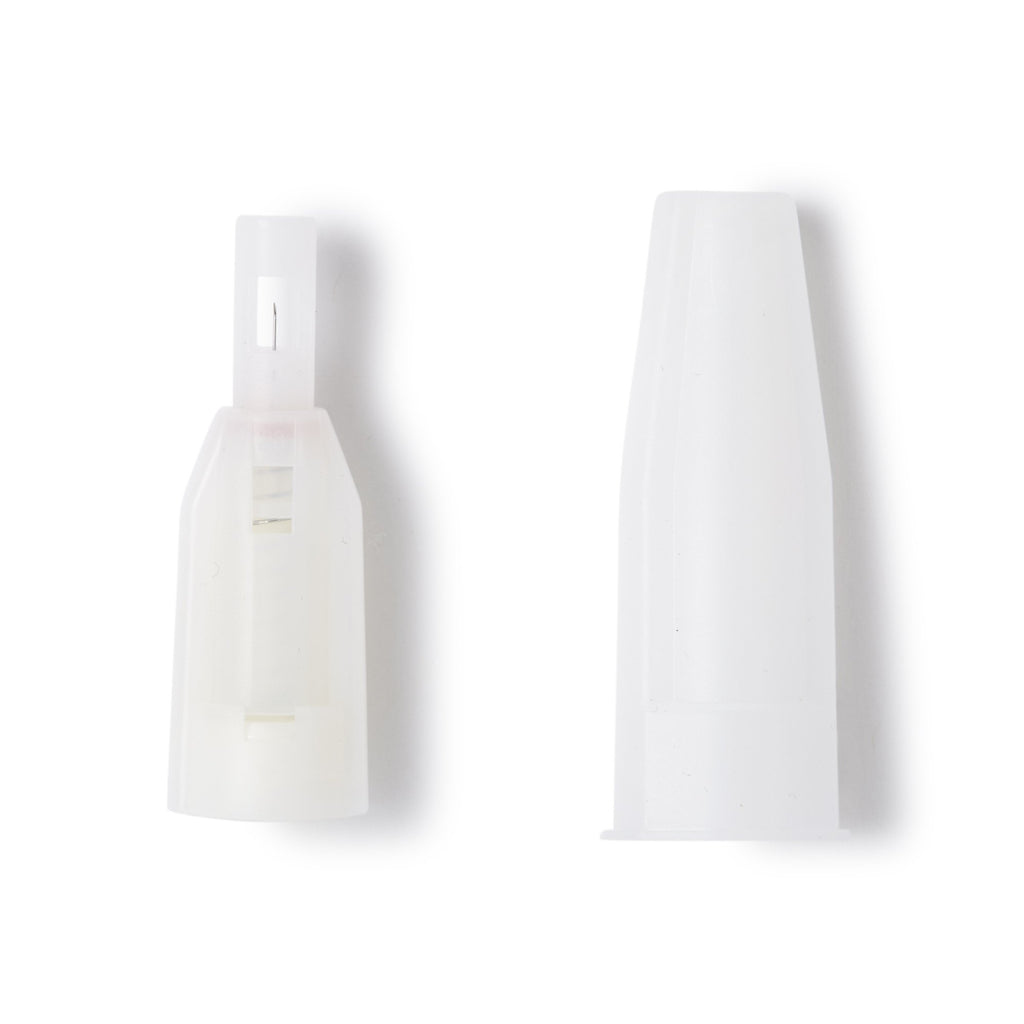 • Automatic needle lock-out; appearance of red stripes confirms that the needle has been used and is ready to be disposed of safely.