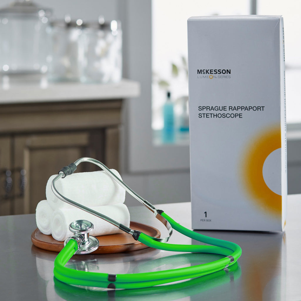 McKesson Sprague Stethoscope Green 2-Tube 22 Inch Tube Double Sided Chestpiece (1089447_EA) 1/EA