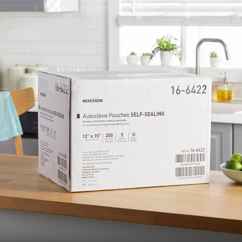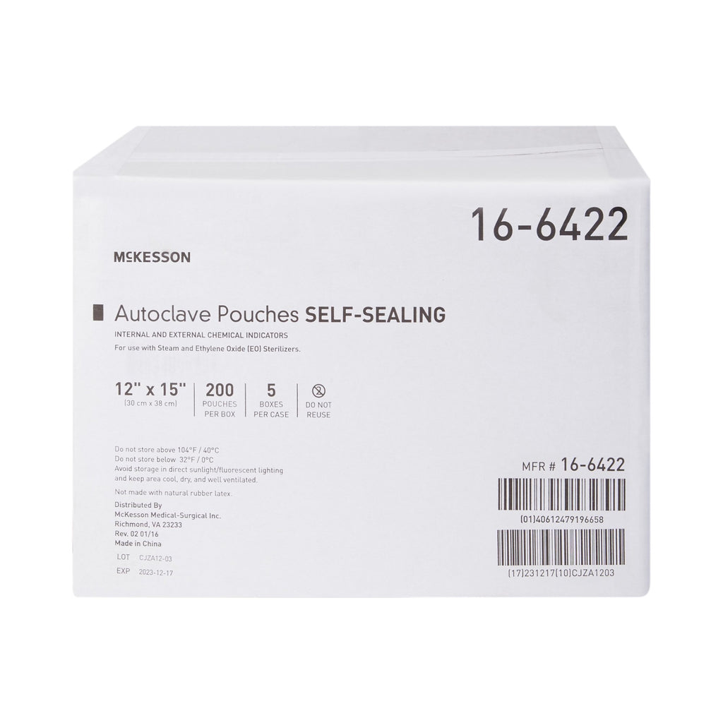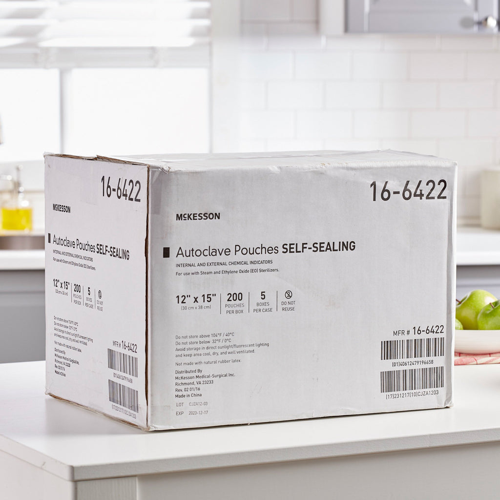 McKesson Sterilization Pouch Ethylene Oxide (EO) Gas / Steam 12 X 15 Inch Transparent Blue / White Self Seal Paper / Film (960947_CS) 1000/CS
