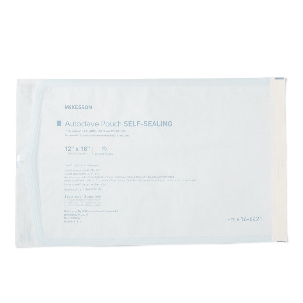 McKesson Sterilization Pouch Ethylene Oxide (EO) Gas / Steam 12 X 18 Inch Transparent Blue / White Self Seal Paper / Film (960948_CS) 1000/CS