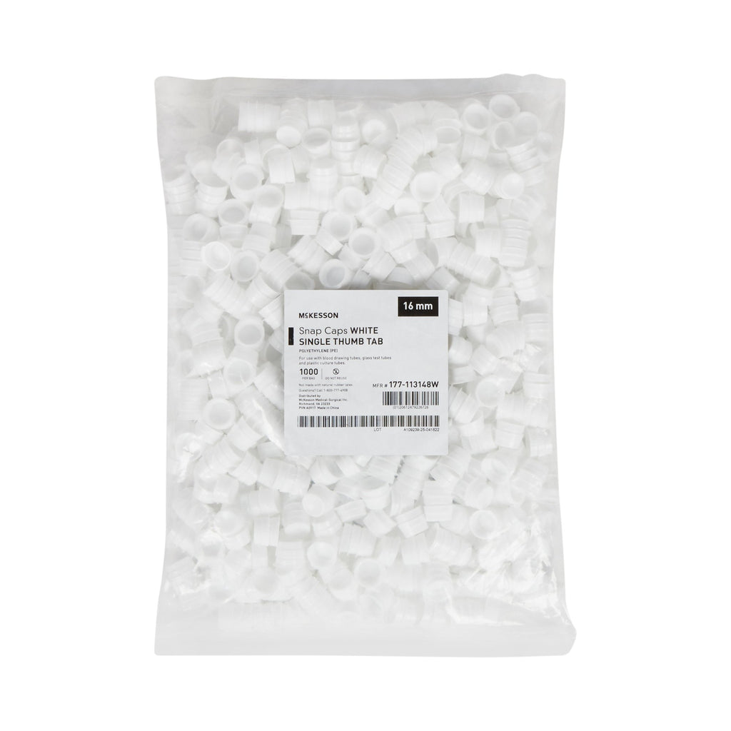 McKesson Tube Closure Polyethylene Snap Cap White 16 mm For Use with 16 mm Blood Drawing Tubes, Glass Test Tubes, Plastic Culture Tubes NonSterile (1082108_BG) 1000/BG