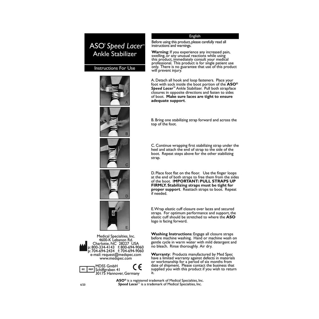 ASO® Speed Lacer Ankle Brace Large Lace-Up / Hook and Loop Strap Closure Foot (636483_EA) 1/EA