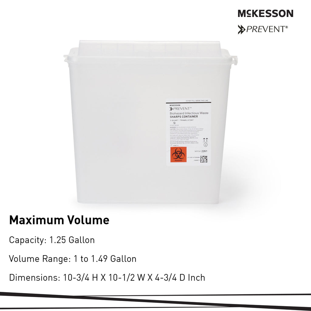 McKesson Prevent® Sharps Container Translucent Base 10-3/4 H X 10-1/2 W X 4-3/4 D Inch Horizontal Entry 1.25 Gallon (855126_EA) 1/EA