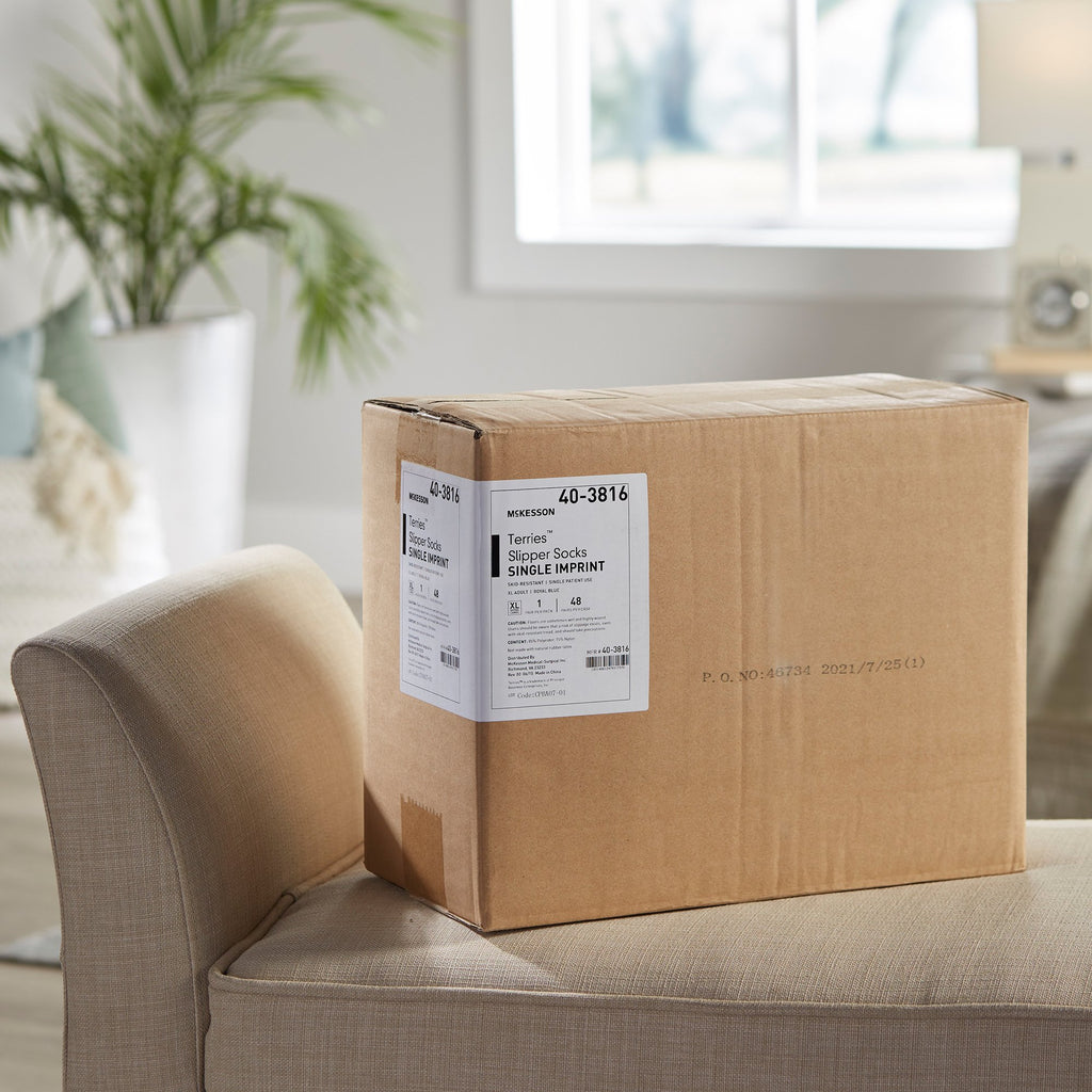 McKesson Terries™ Slipper Socks Unisex Adult X-Large Single Tread Single Patient Use Royal Blue (334875_PR) 1/PR