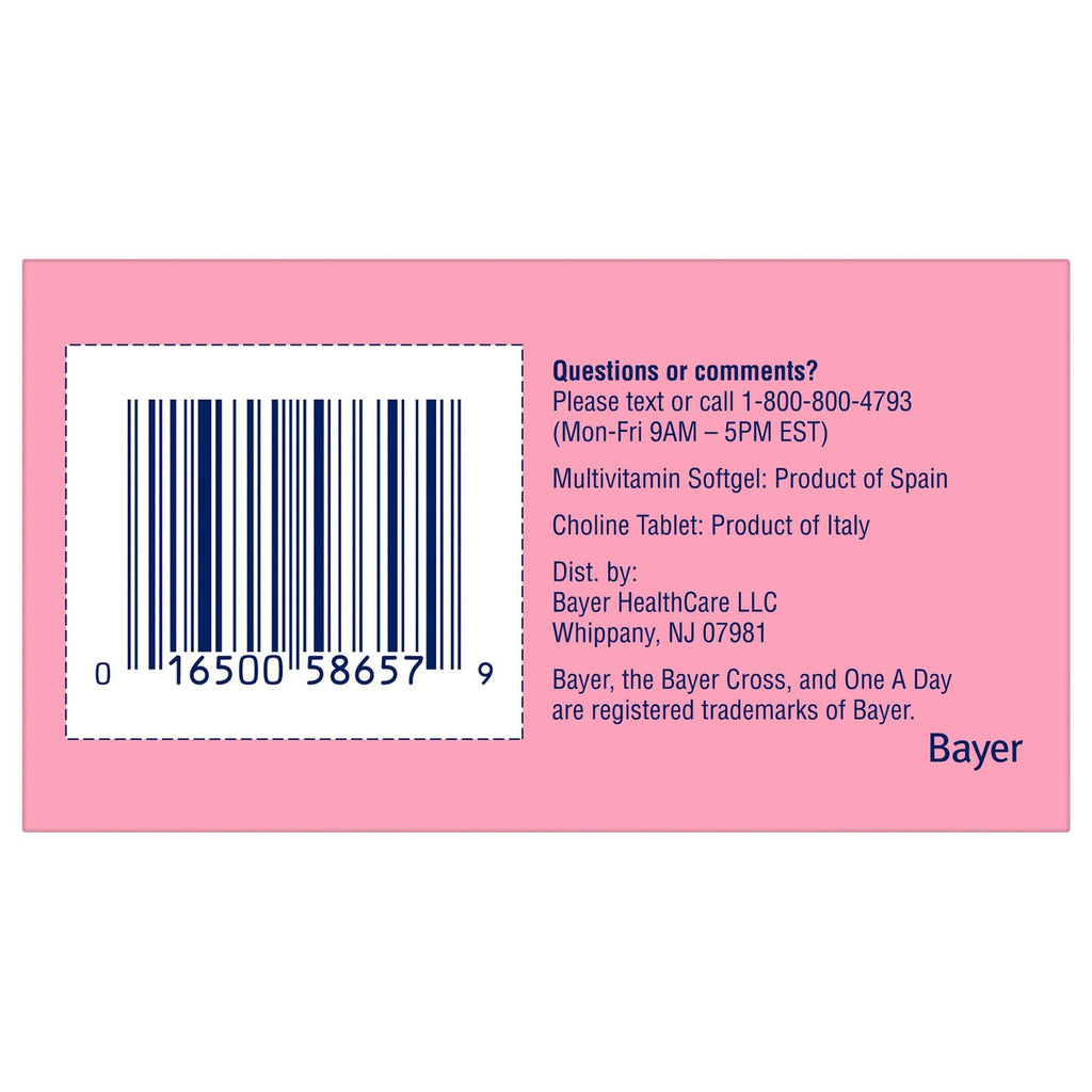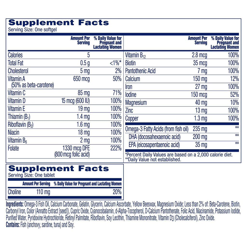 • In addition to multivitamin/multimineral/multinutrient softgels, this version of One a Day Prenatal includes 110-milligram choline tablets for more comprehensive support for baby's brain and cognitive development than most other prenatal vitamins that have just folic acid and/or DHA