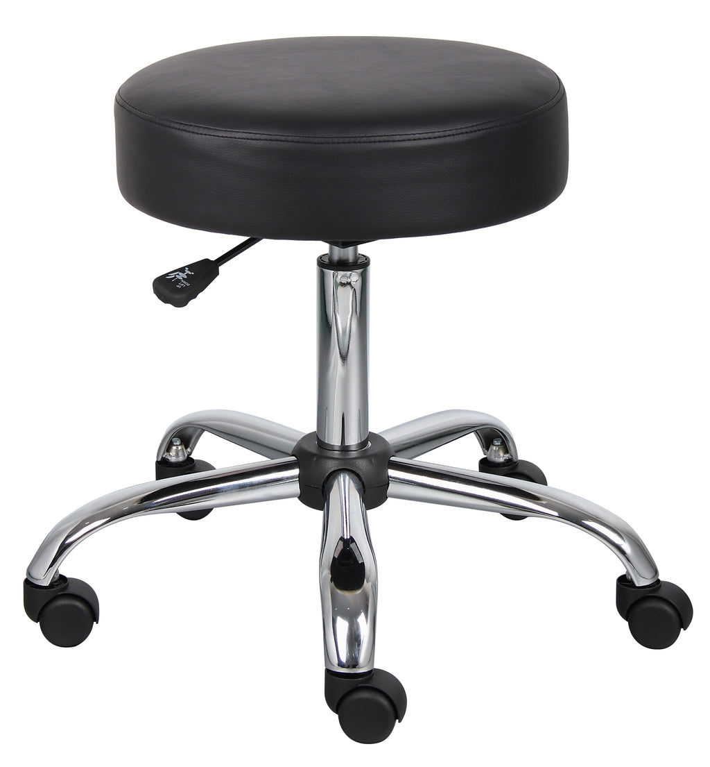This medical stool is upholstered in durable Black, antimicrobial vinyl, and equipped with a 4� thick molded foam seat that provides improved durability. It is attached with an easy to reach gas lift seat height adjustment lever, providing a vertical range of 6� to suit your personal comfort and work environment. Its base has an attractive chrome finish, and provides great stability to the stool. The hooded double wheel casters make it easy to move and shift directions.