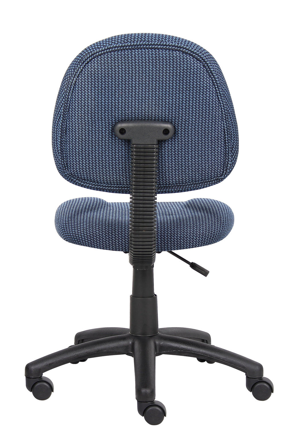 This Blue Fabric Deluxe Posture Chair comes with a thick padded seat and back with built in lumbar support. It has an adjustable back depth that can be easily customized for your personal needs. The pneumatic adjustable gas lift allows for easy seat height adjustment, to help you find the personalized sitting style that suits you and your work environment. The five star nylon base allows for smooth movement and stability. The hooded double wheel casters make it easy to move and shift directions.