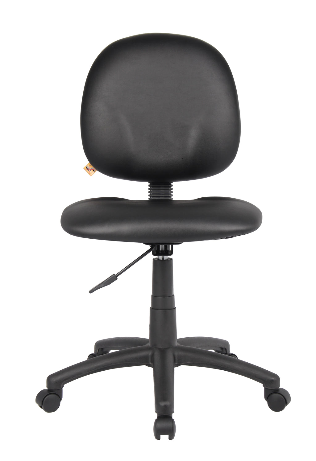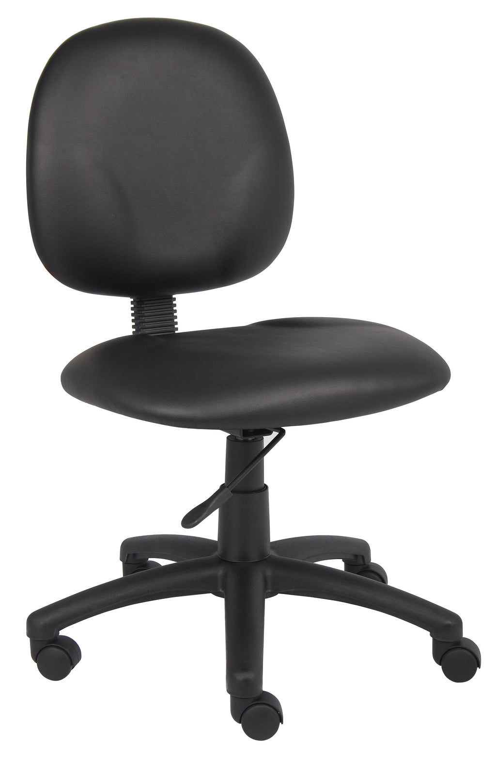 This diamond task chair is the perfect mobile seating solution for any office. It features an extra large seat complete with wide back cushions. It features an extra large seat complete with wide back cushions and has an overall weight capacity of 275 pounds. Its contoured back provides excellent spinal support, so users can get through those long days without the extra strain. Additional features include pneumatic gas lift seat height adjustment, black Antimicrobial vinyl upholstery, and adjustable back height and depth. For your convenience, the unit ships ready to assemble.